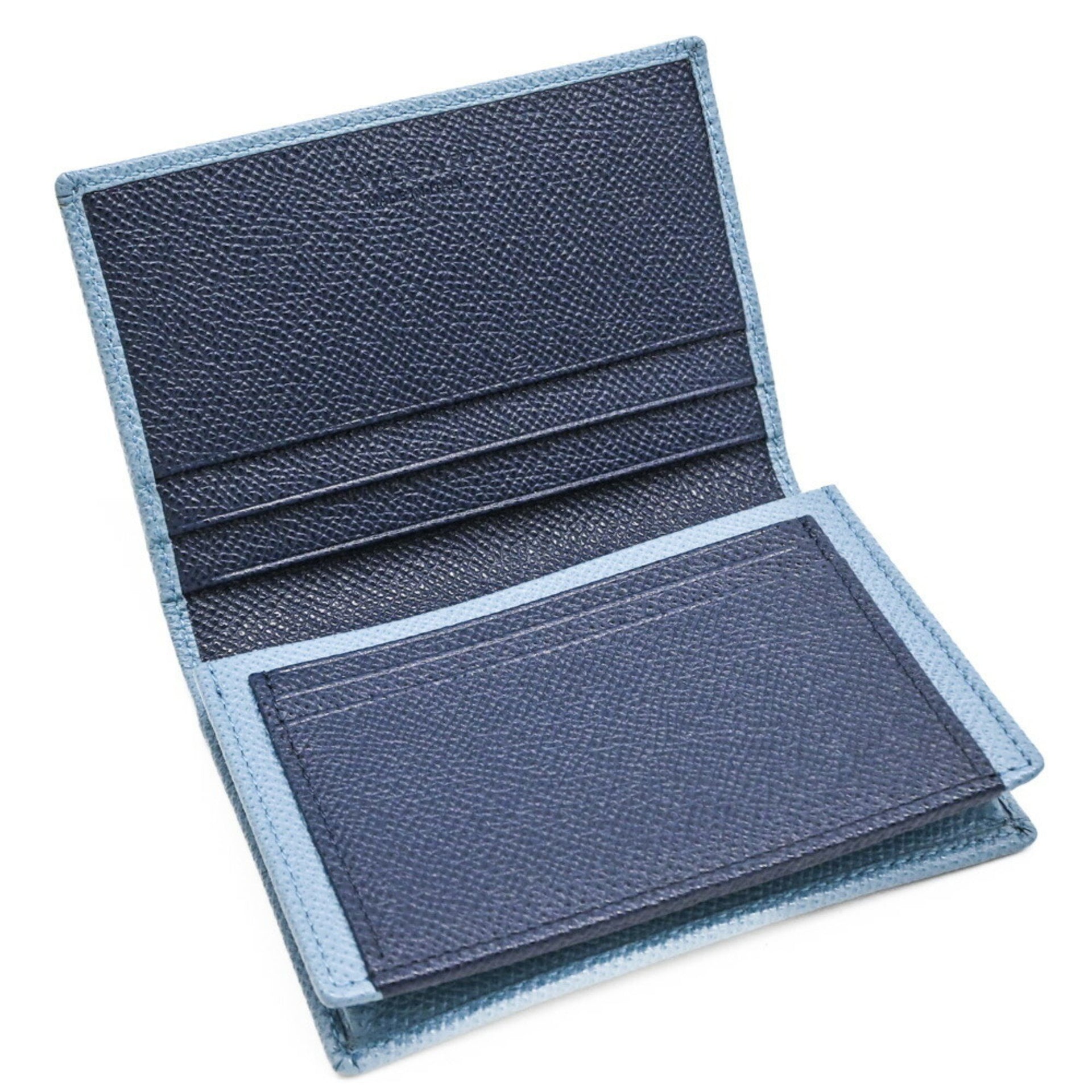 BVLGARI Bulgari Bi-fold Business Card Holder/Card Case Compact Bicolor Blue Light