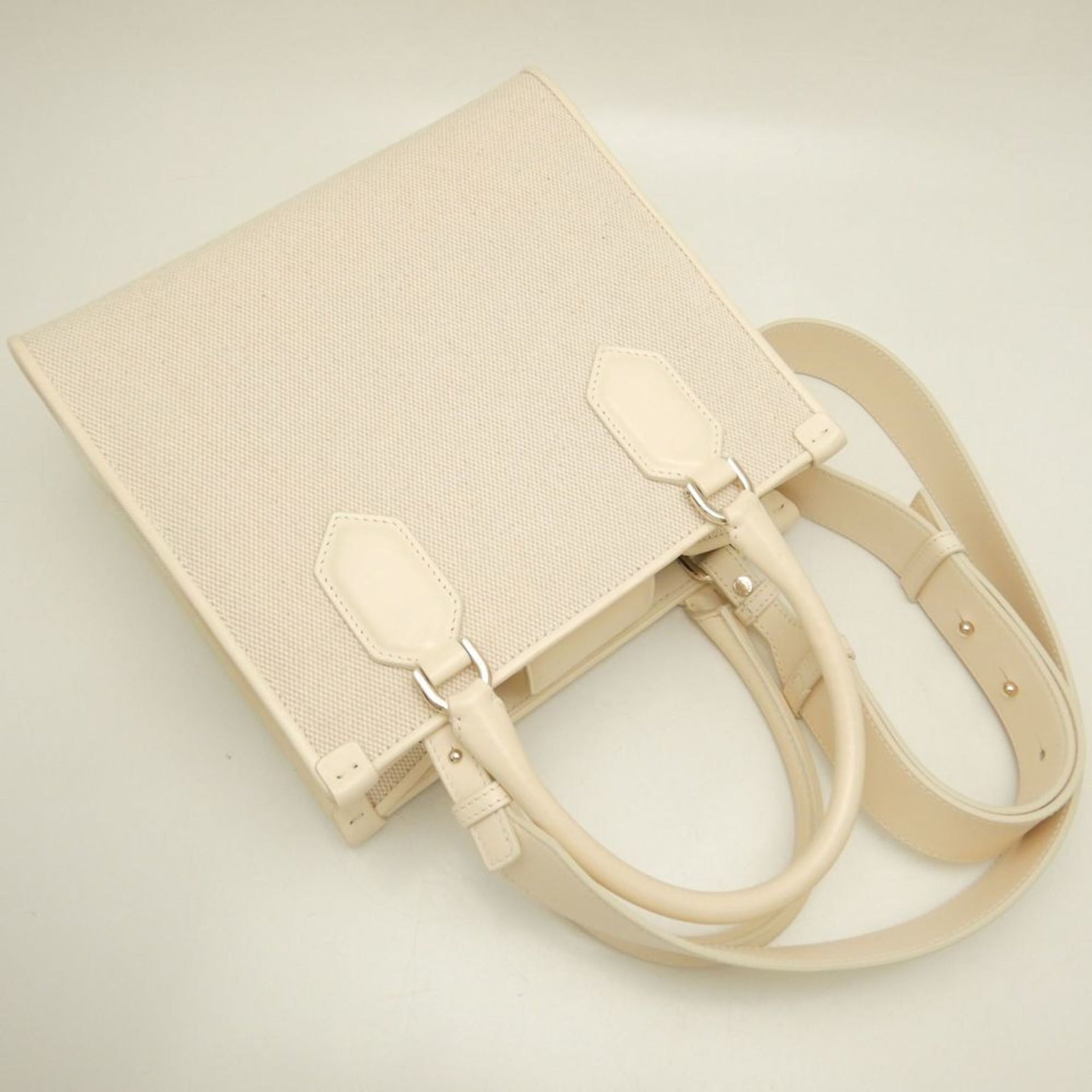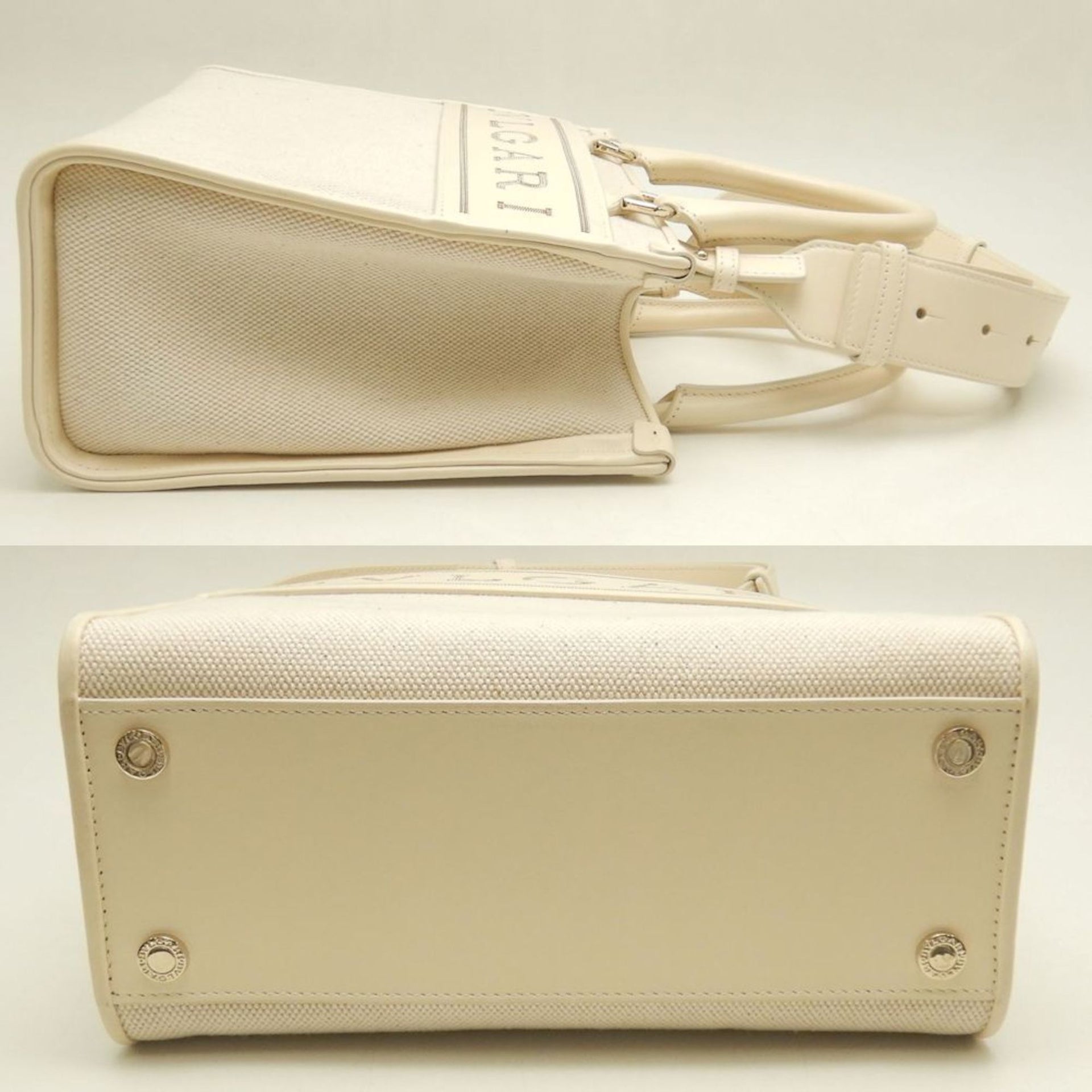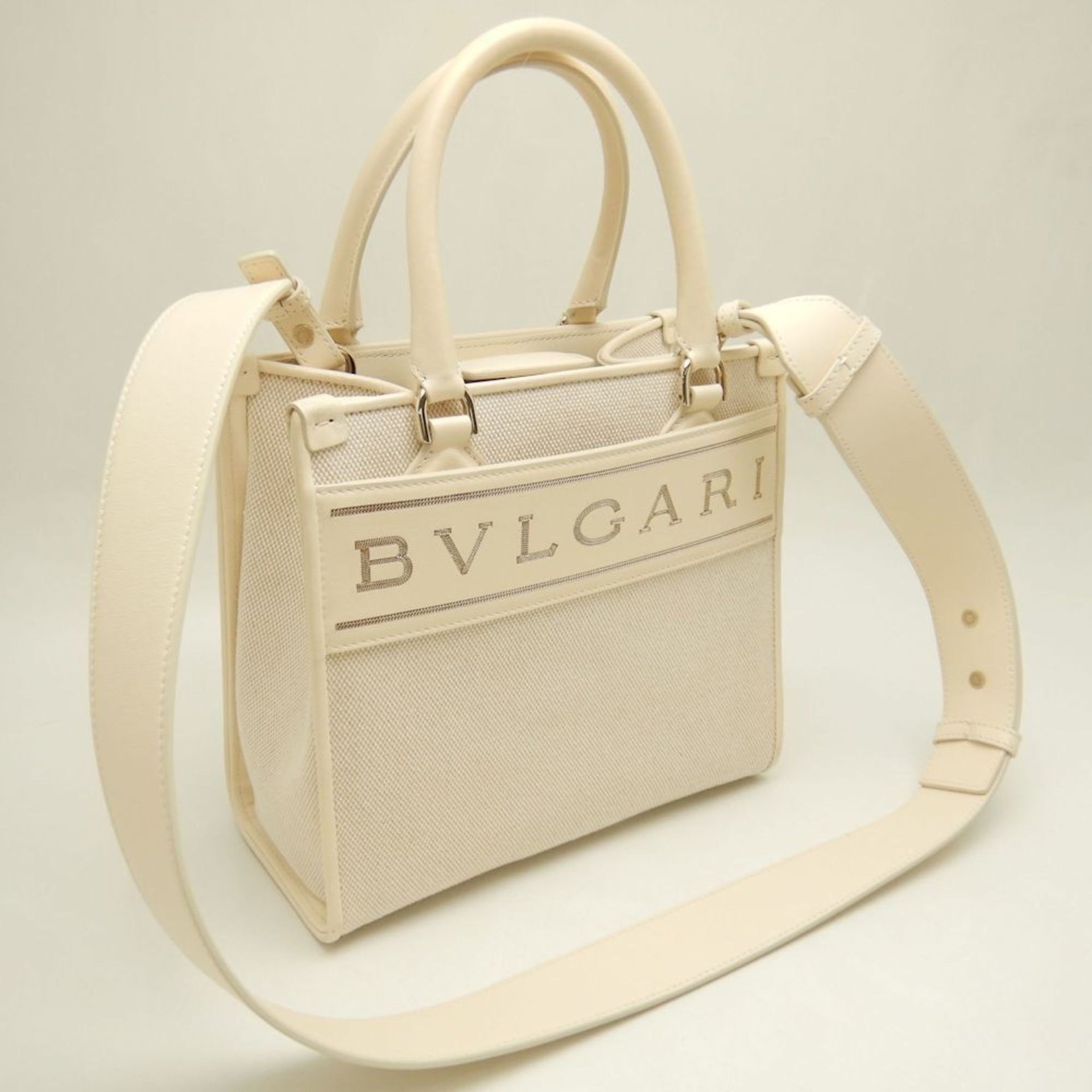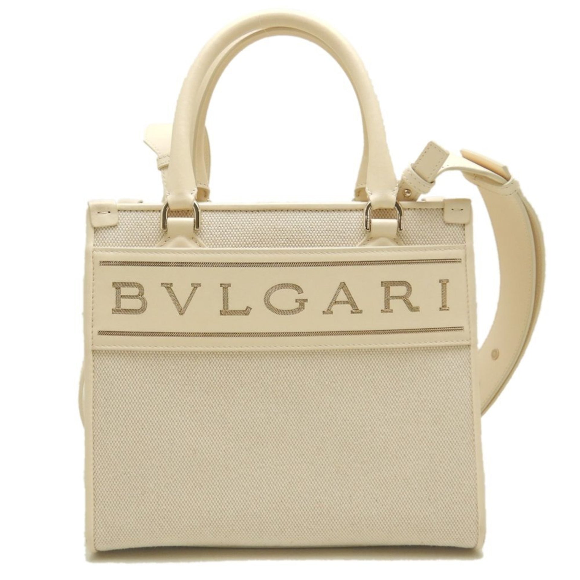 BVLGARI Bulgari Tote Small Bag Canvas x Leather Ivory 252842