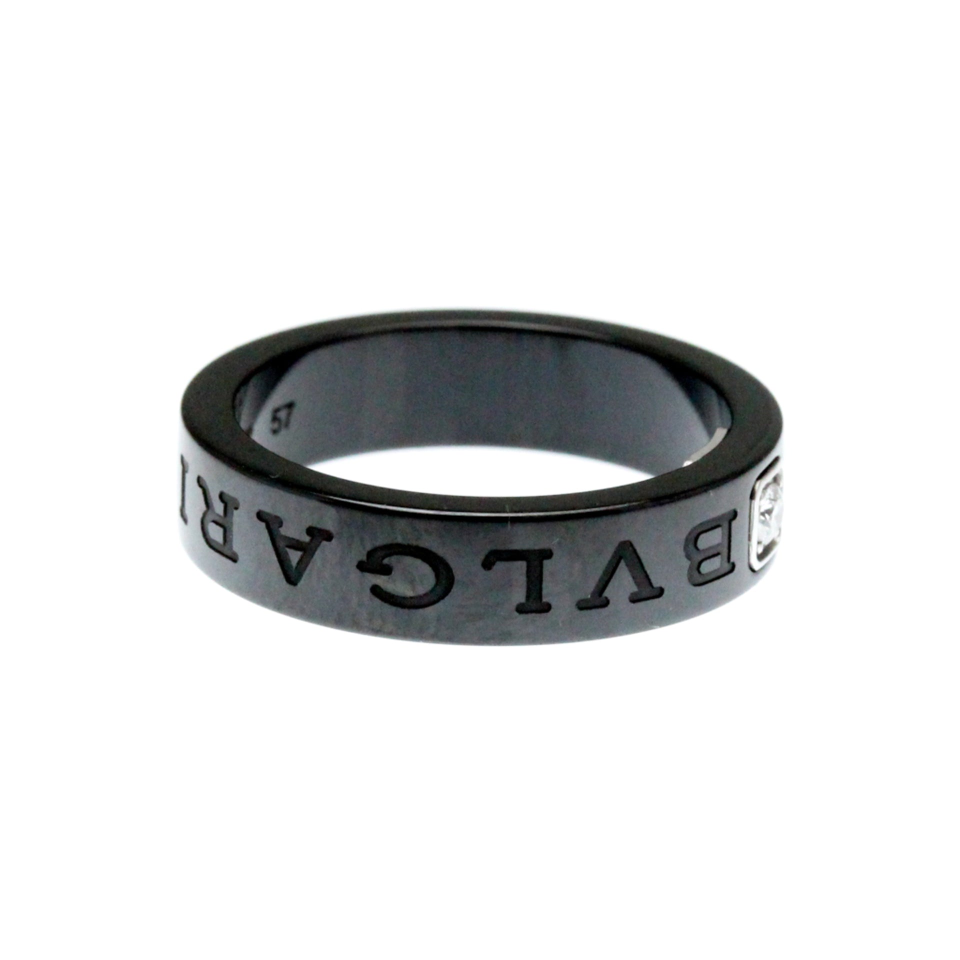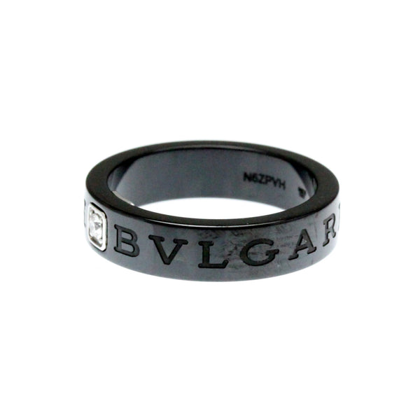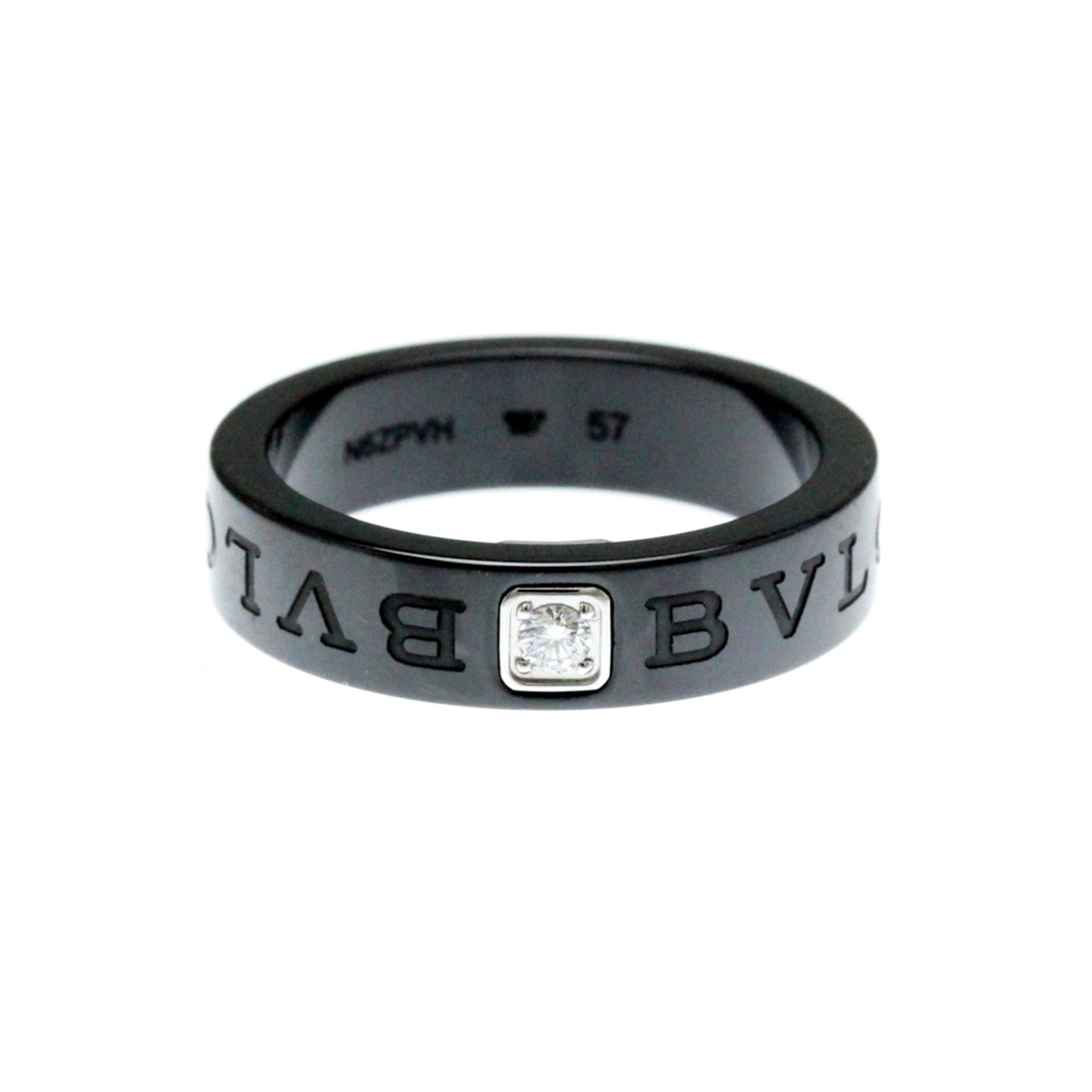 Bvlgari Bvlgari Double Logo 1P Diamond Ring White Gold (18K),Ceramic Fashion Diamond Band Ring Black