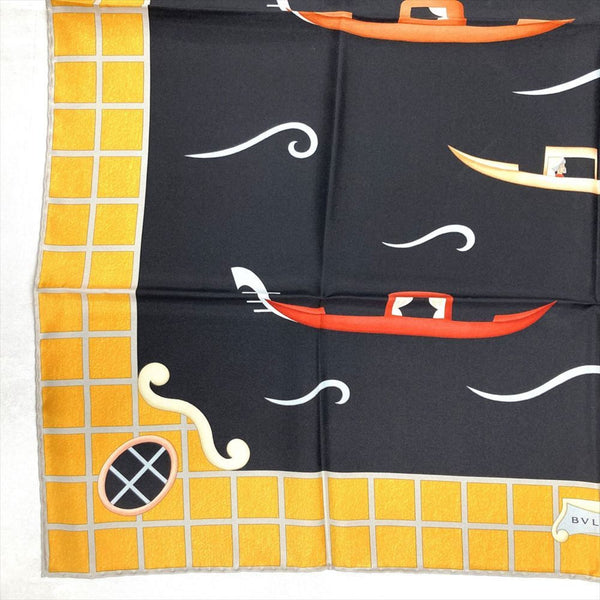 BVLGARI Davide Pizzigoni Boat Scarf Silk Muffler in Black and Orange for Women
