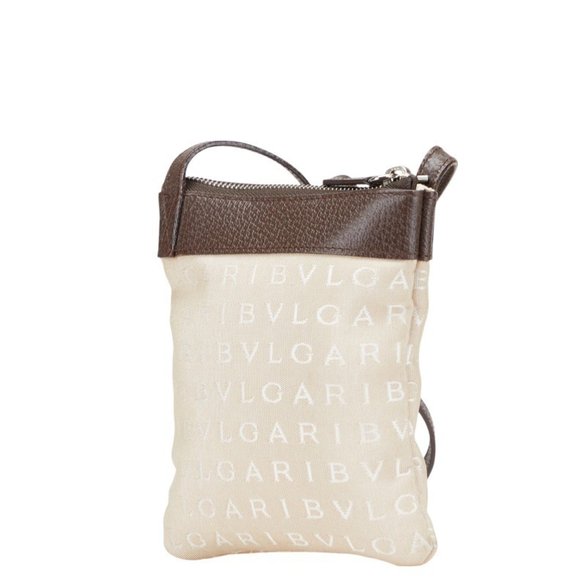 BVLGARI Logomania Shoulder Bag in Beige and Brown Canvas Leather for Women