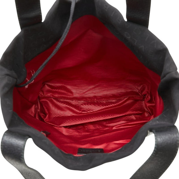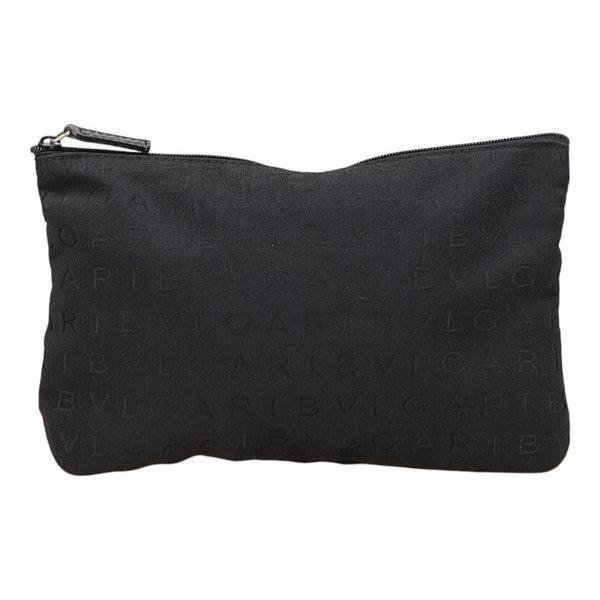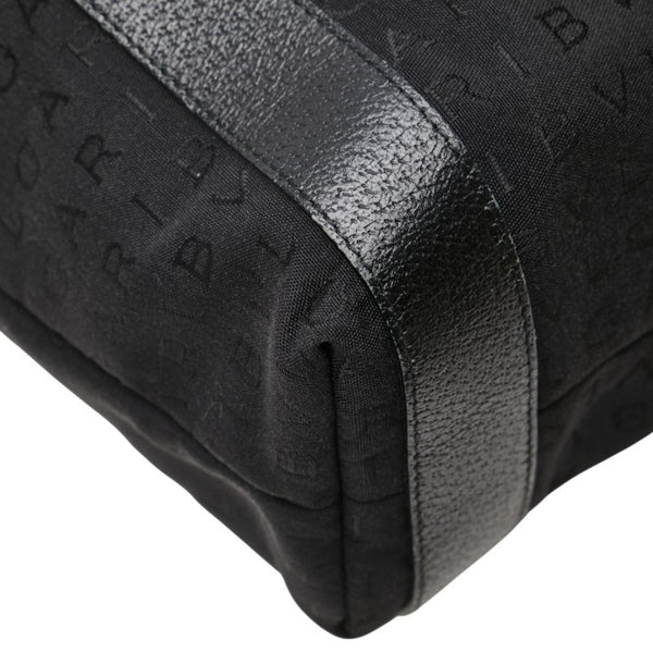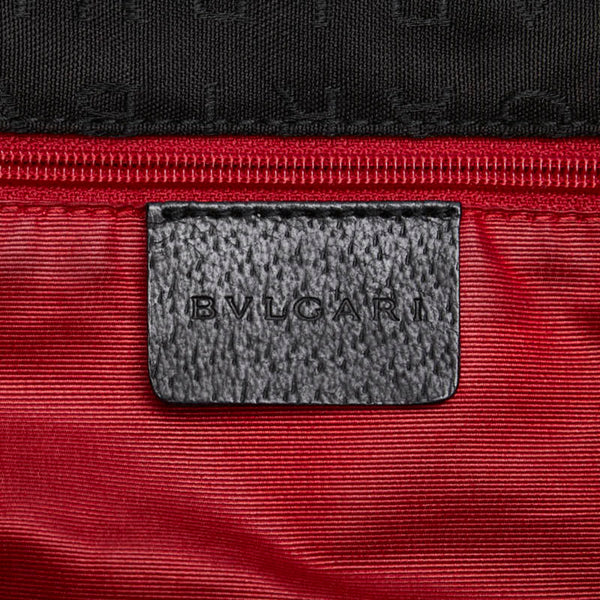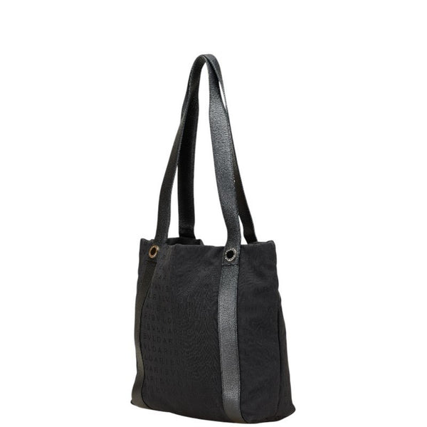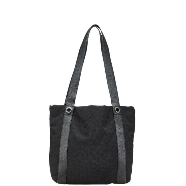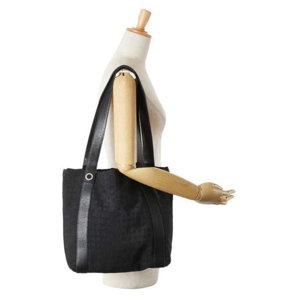 BVLGARI Logomania Tote Bag Handbag Black Canvas Leather Women\'s