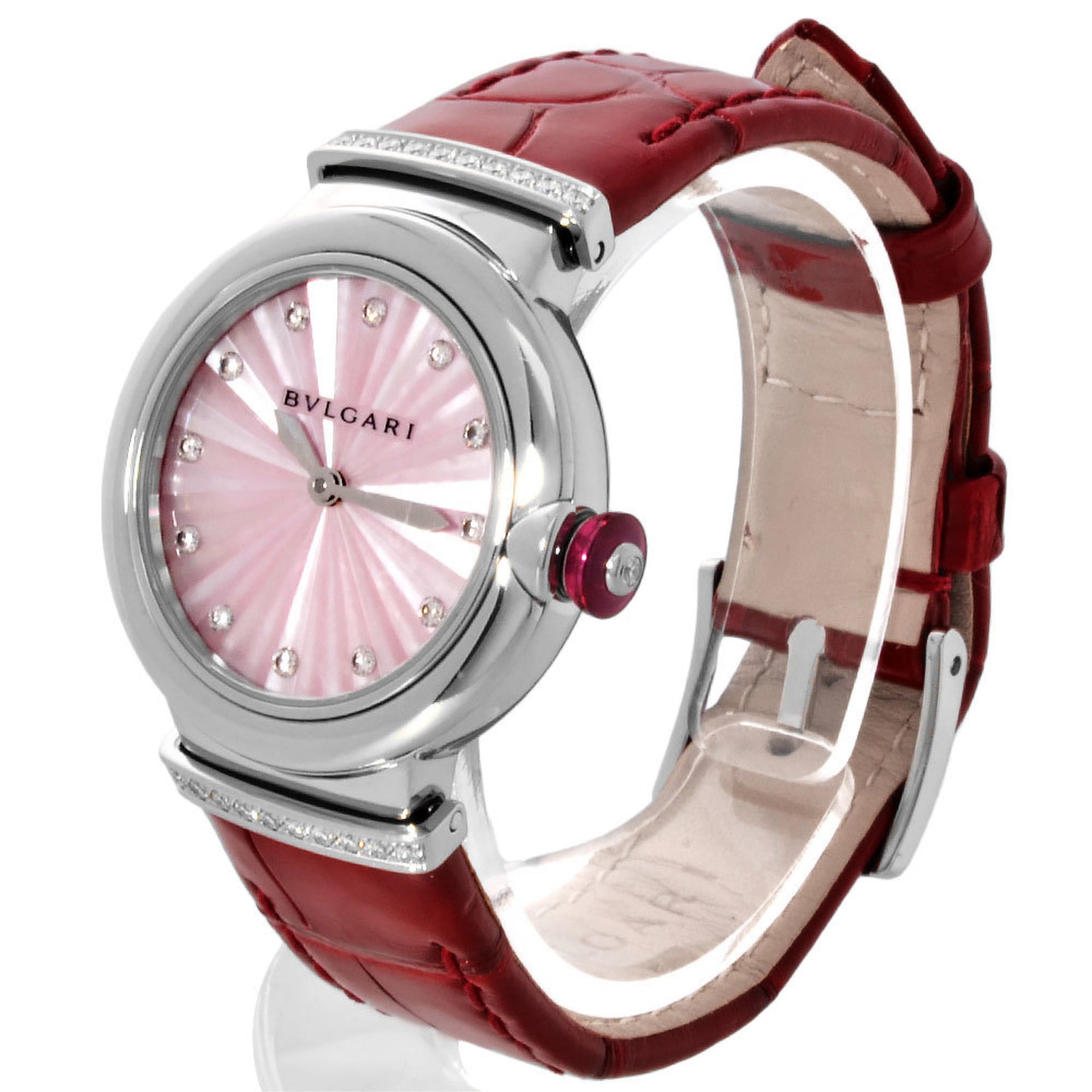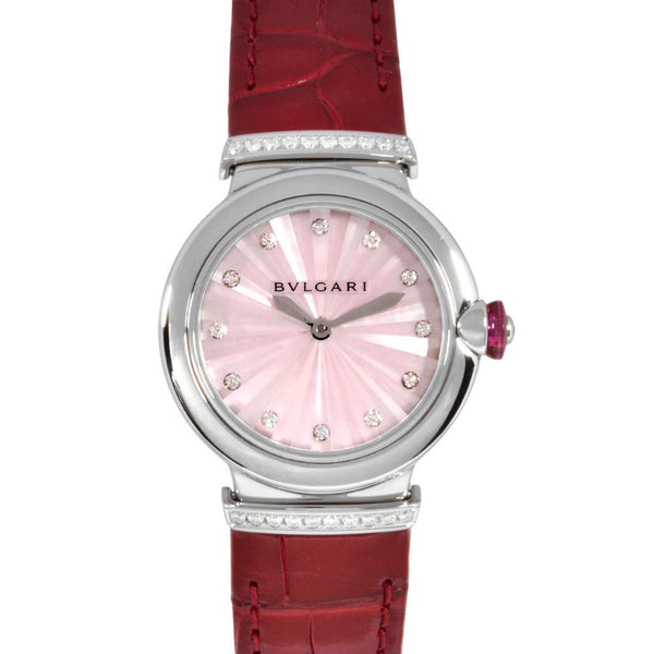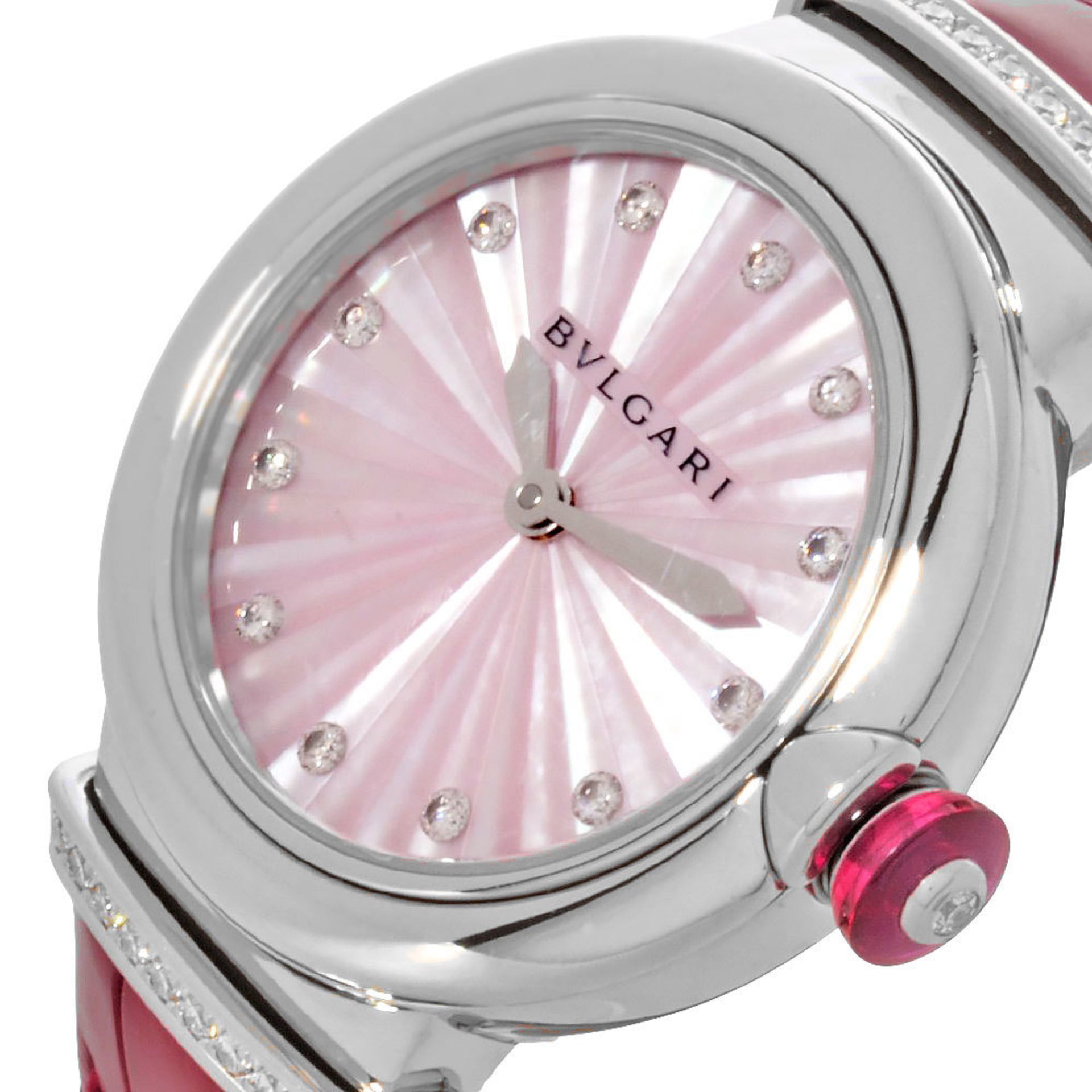 BVLGARI LU28S Lucea Watch Quartz Pink Shell Dial 12P Diamond Index SS Ladies