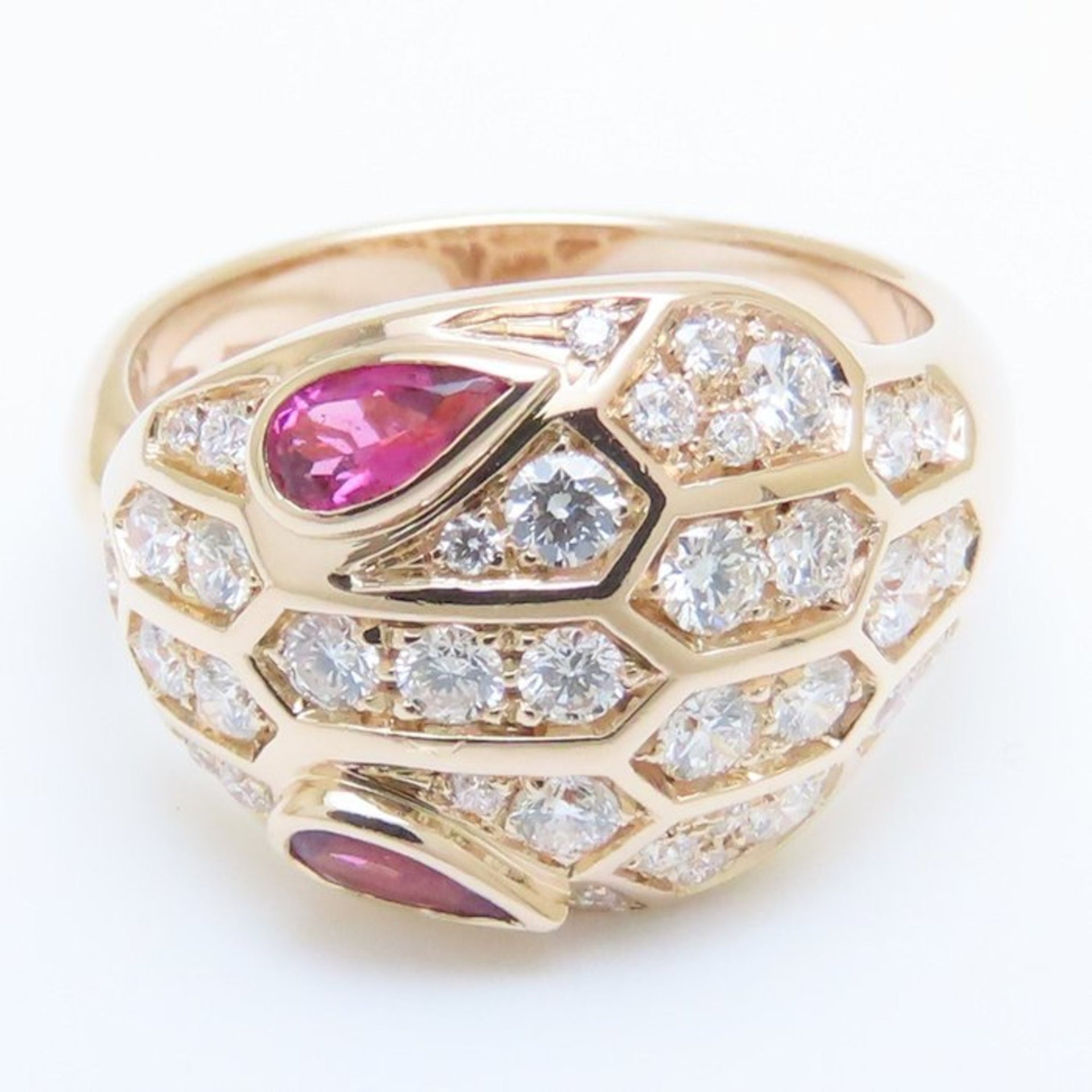 BVLGARI Serpenti Ring with Pink Tourmaline and Diamonds in 18K Gold for Women, 294208