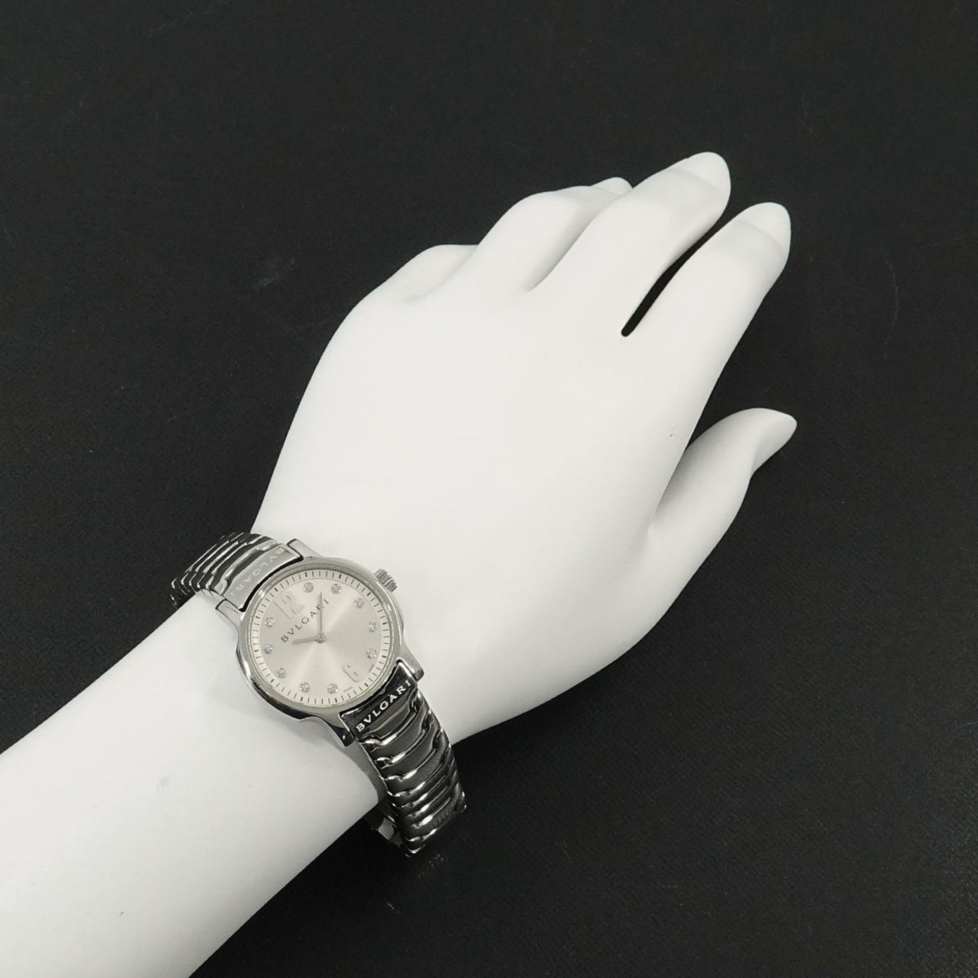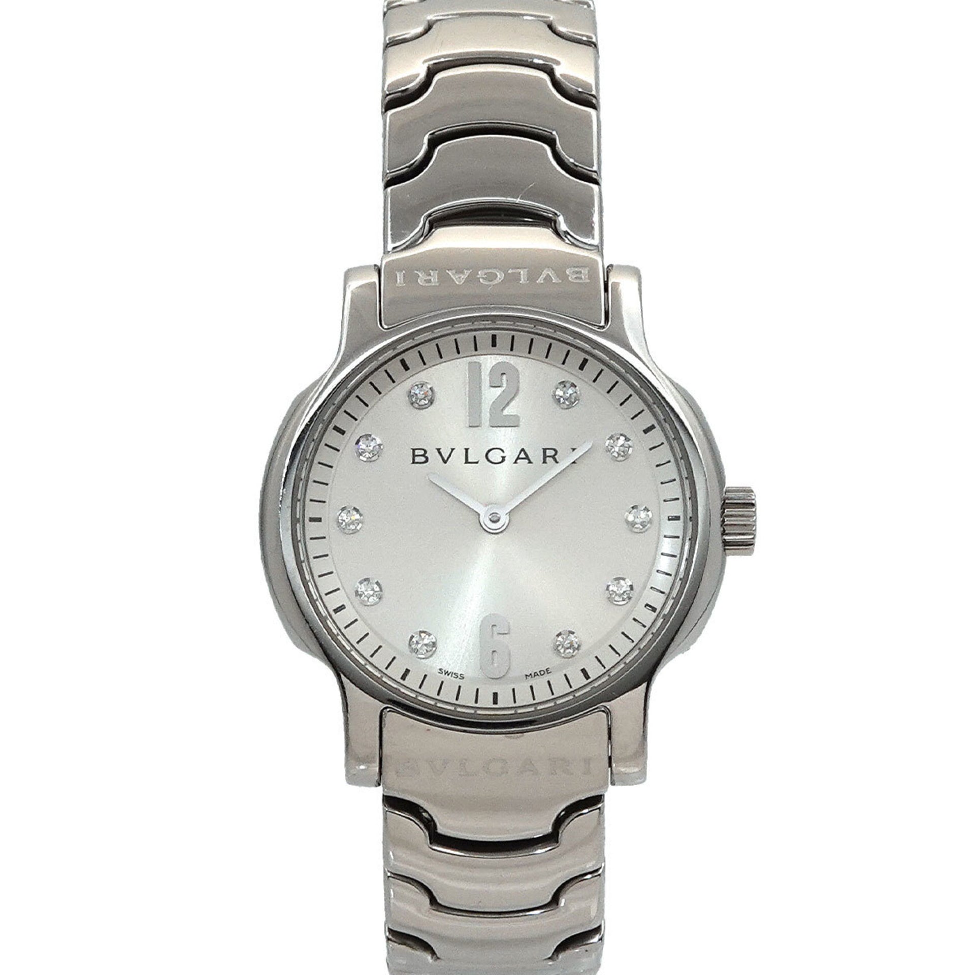 BVLGARI Solo Tempo ST29S Women\'s Watch with Date, 10 Diamonds, and Silver Quartz Movement