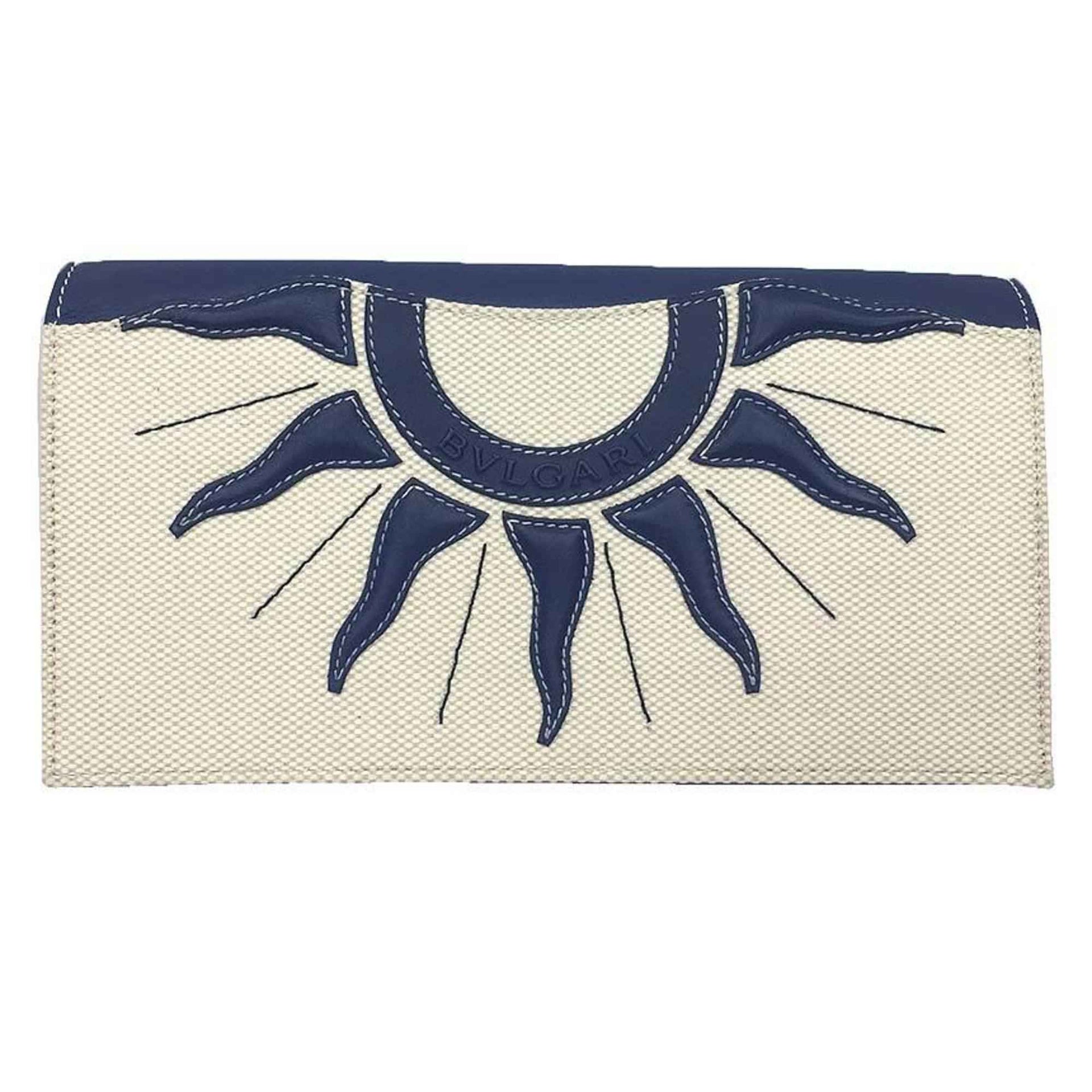 BVLGARI Tondo Sun Long Wallet (Sun) 24757 W.Wallet 4 Compartments 6cc Organizer Travel Case Leather and Canvas Navy Natural Colors Men\'s Women\'s Bvlgari