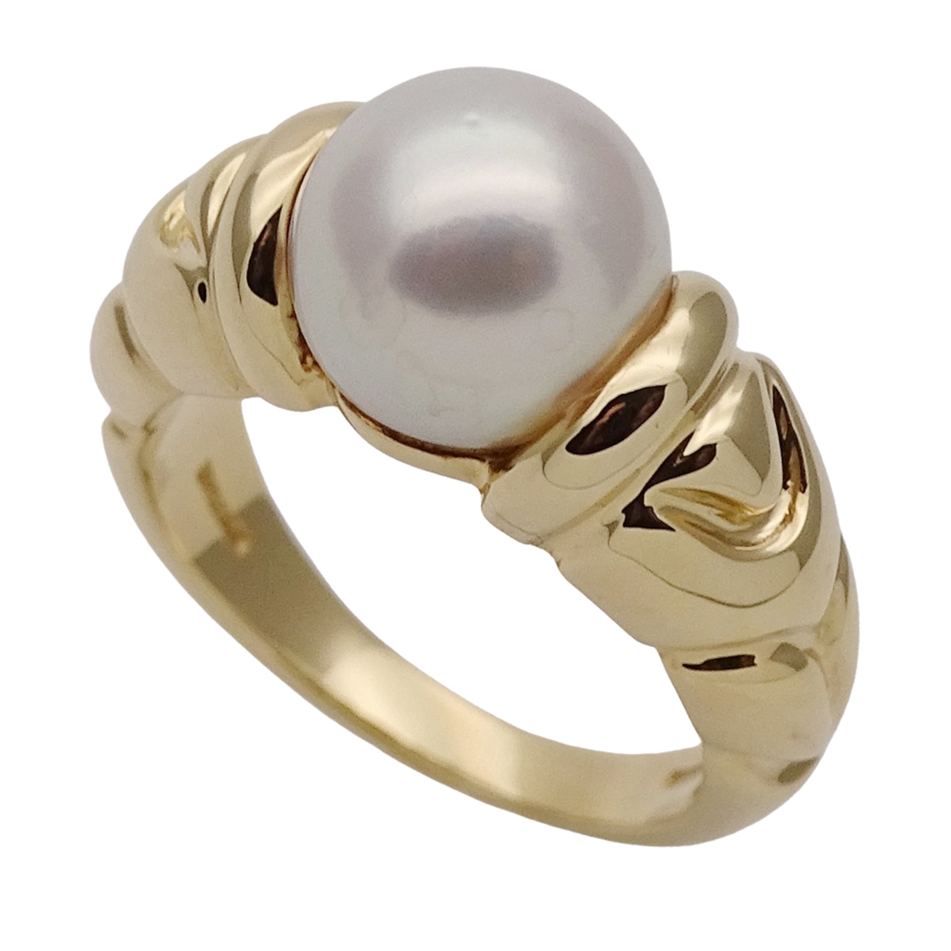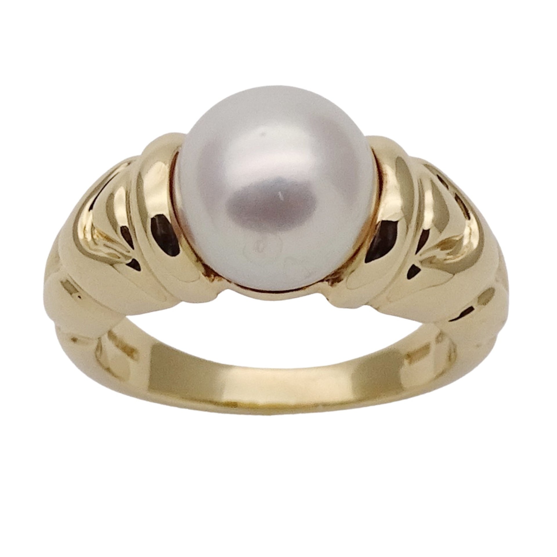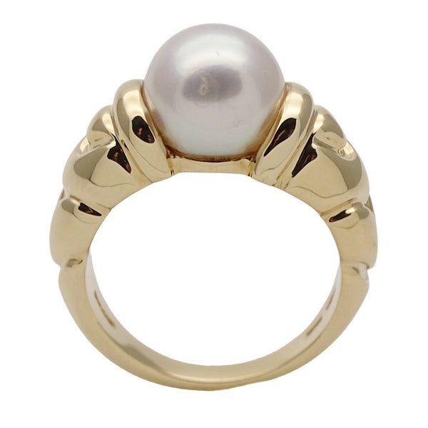 BVLGARI Women\'s Ring, 750YG Yellow Gold with Pearl, Passo Doppio, Size 12