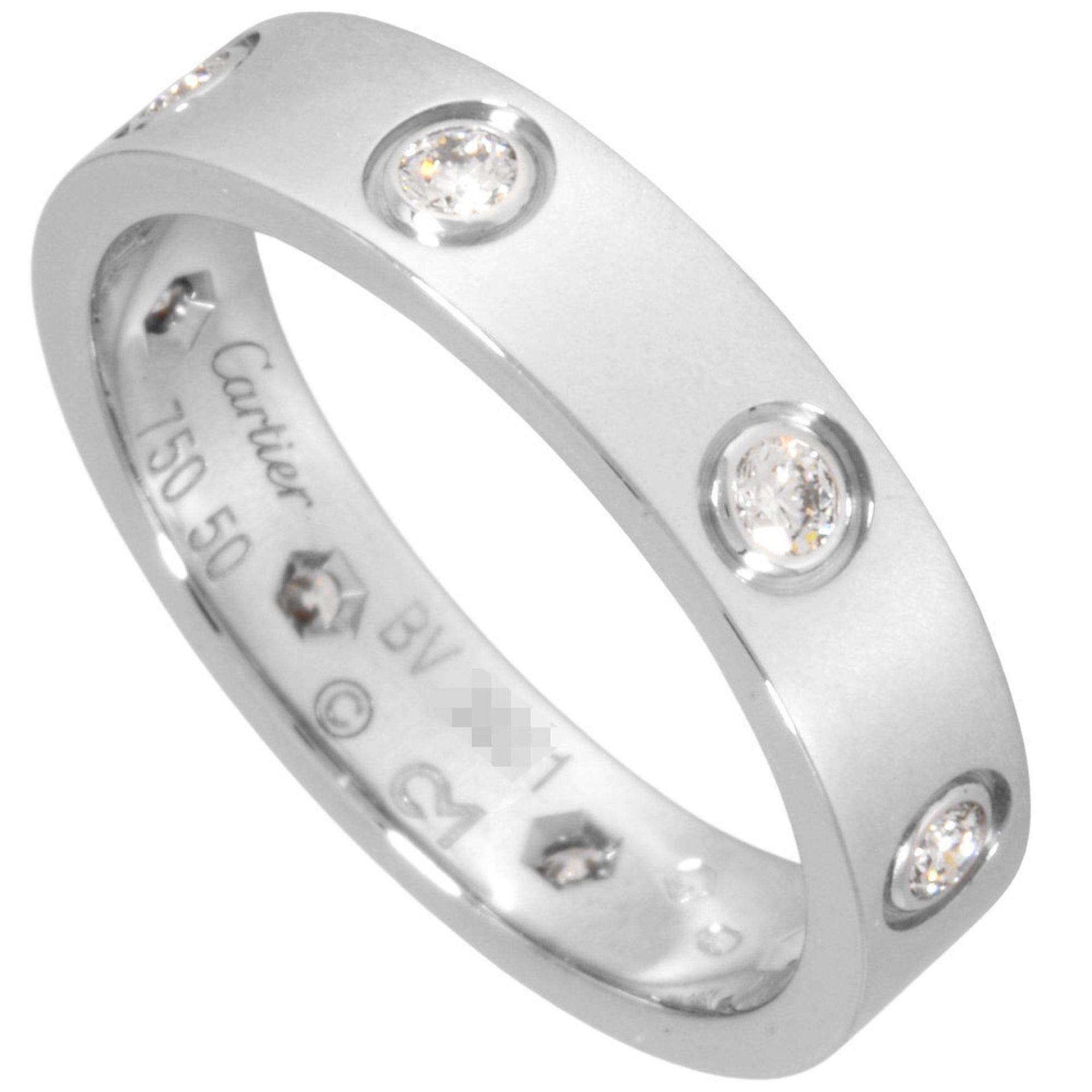 Cartier 8P Diamond Mini Love Ring, #50, 18KWG, 4.3g, White Gold, Women\'s