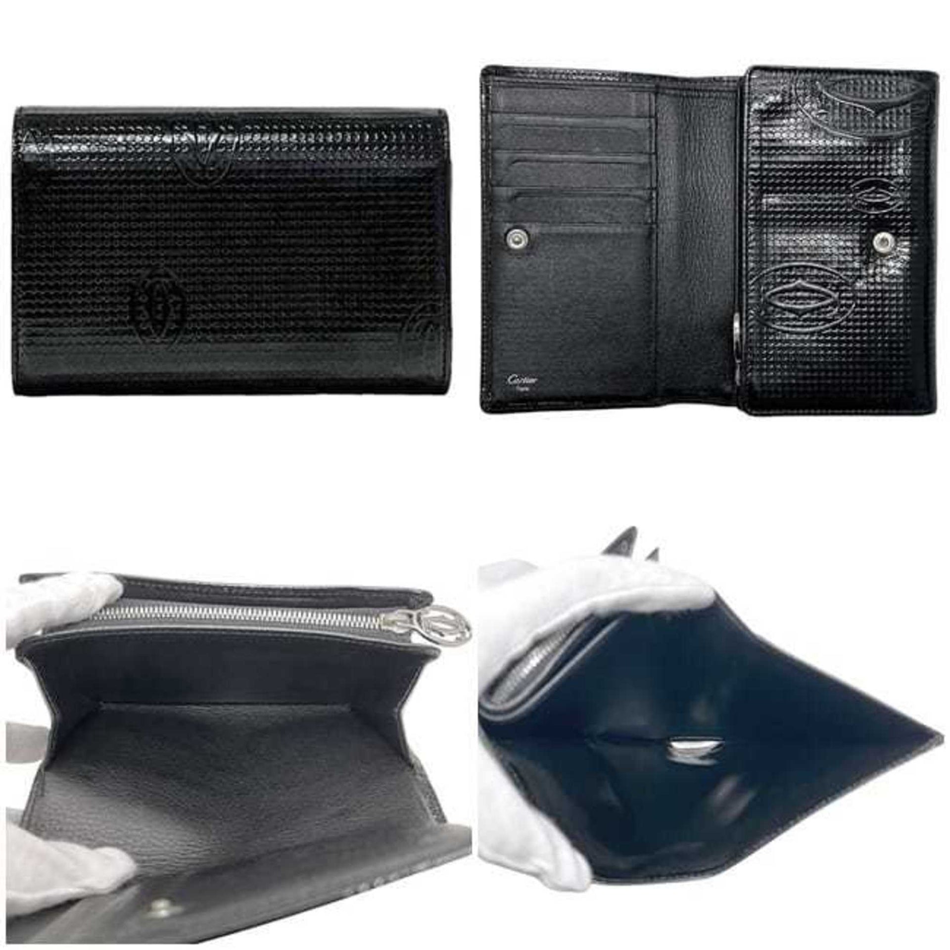 Cartier Bifold Wallet ec-24310 Black Happy Birthday Coated Leather Compact Patent Men\'s and Women\'s HBD