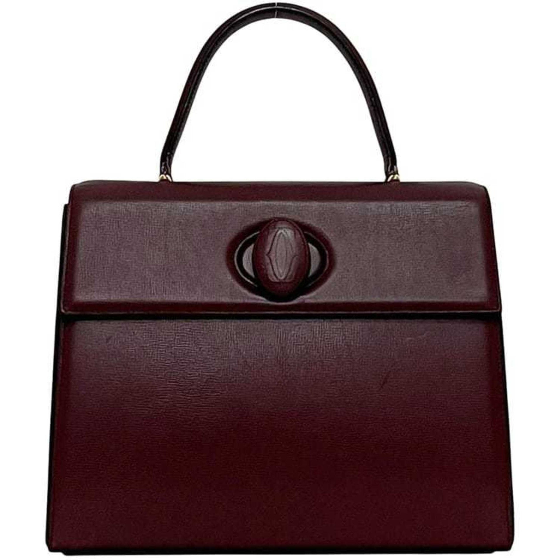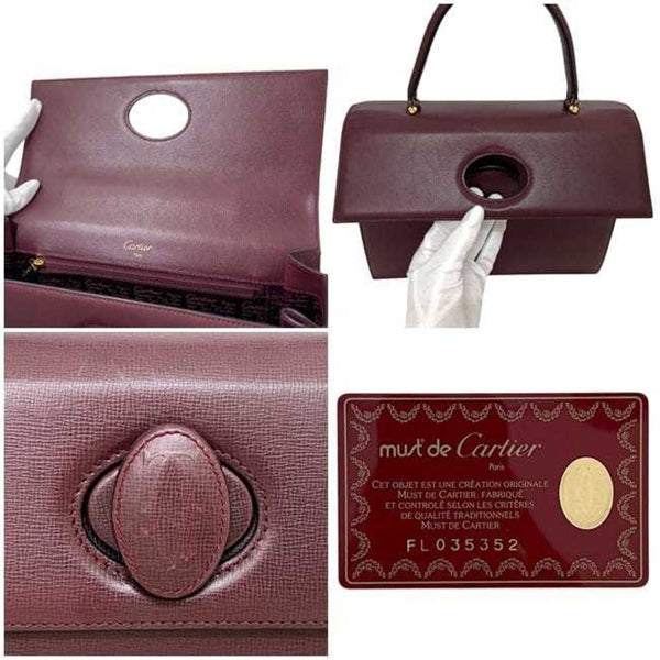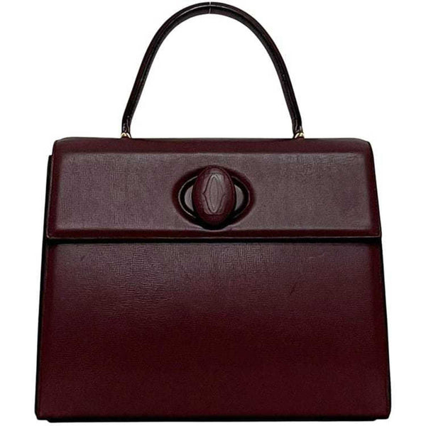 Cartier handbag f-24458 Bordeaux Must leather with flap and turnlock, grained leather, wine red, for women