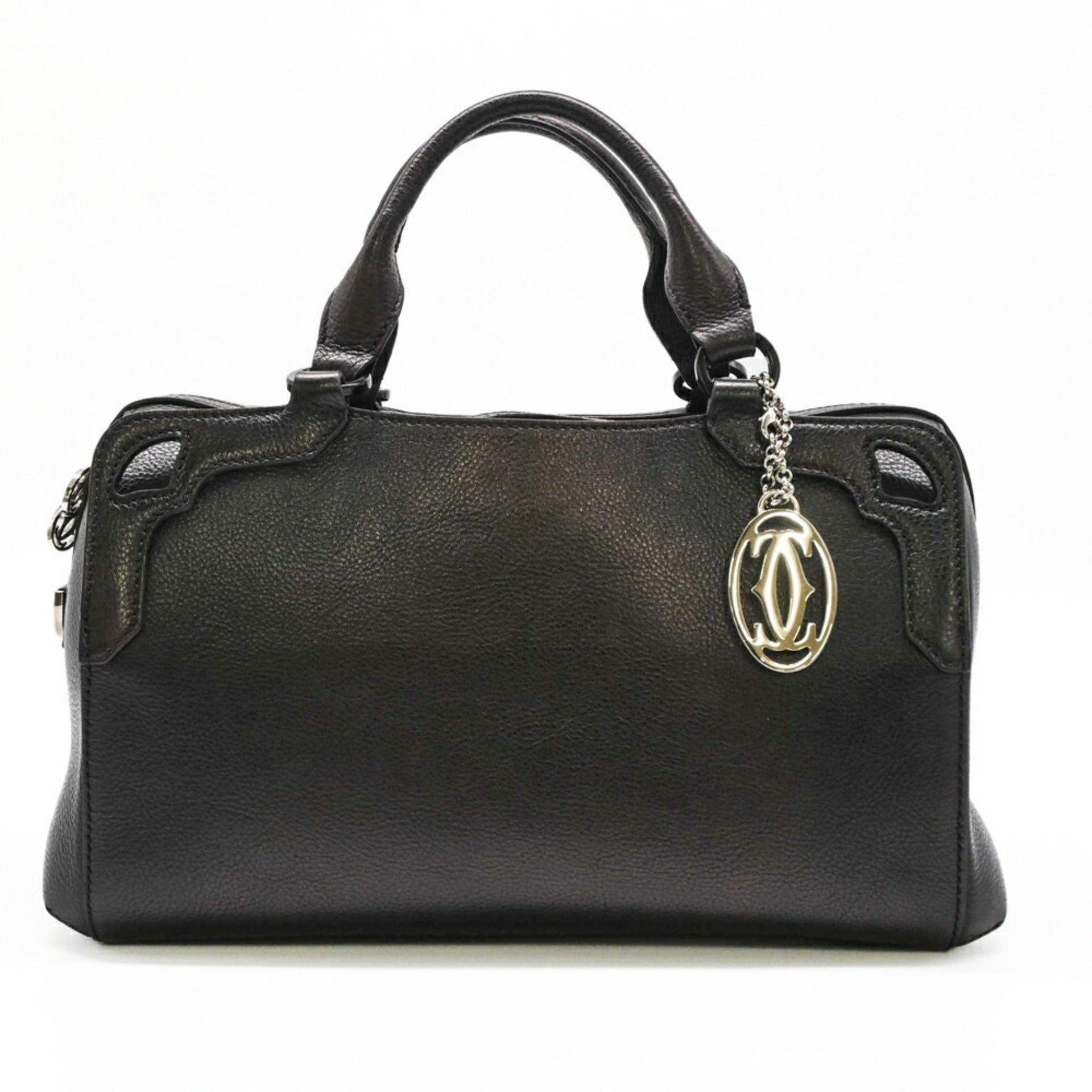 Cartier Marcello de Bowling Bag Handbag Leather Black