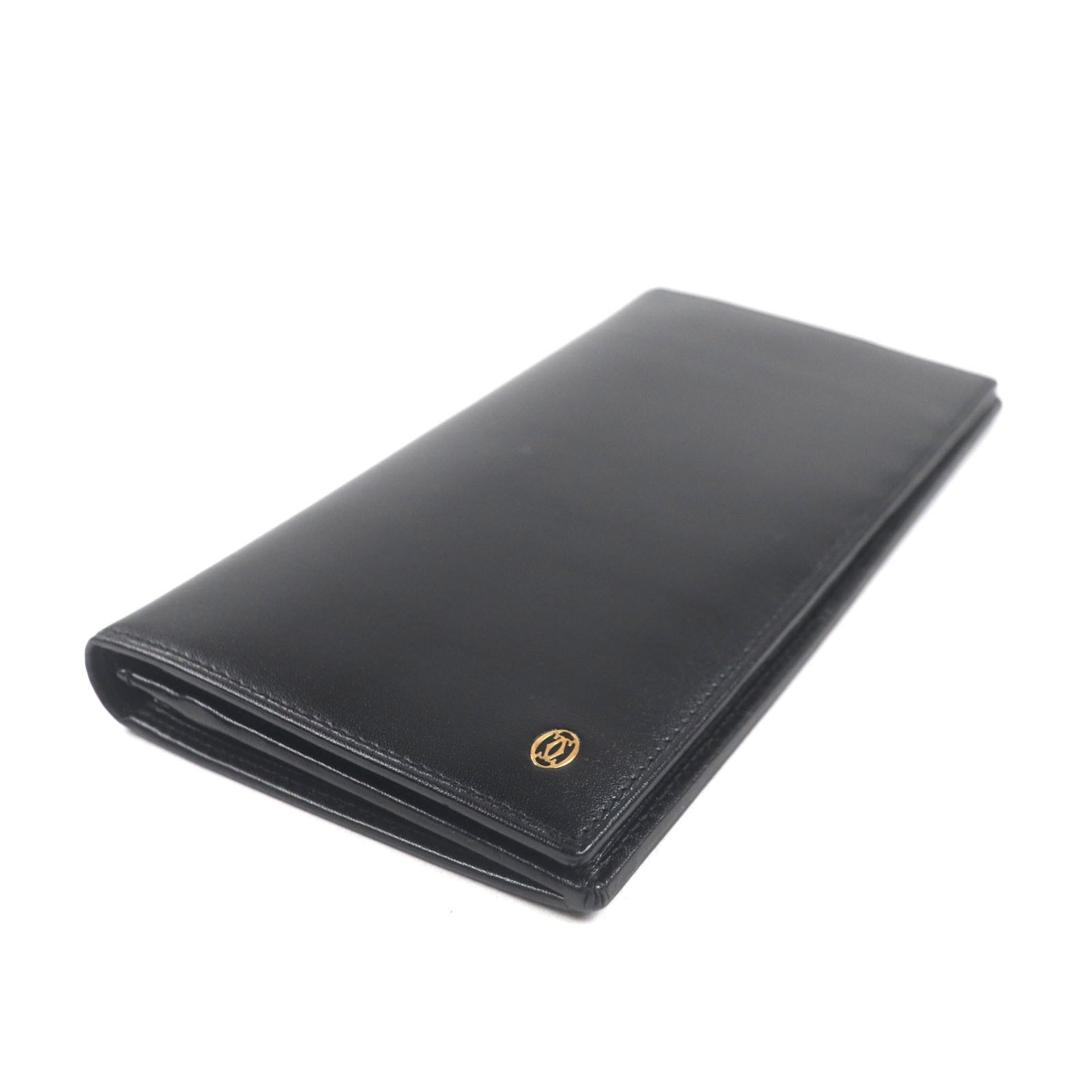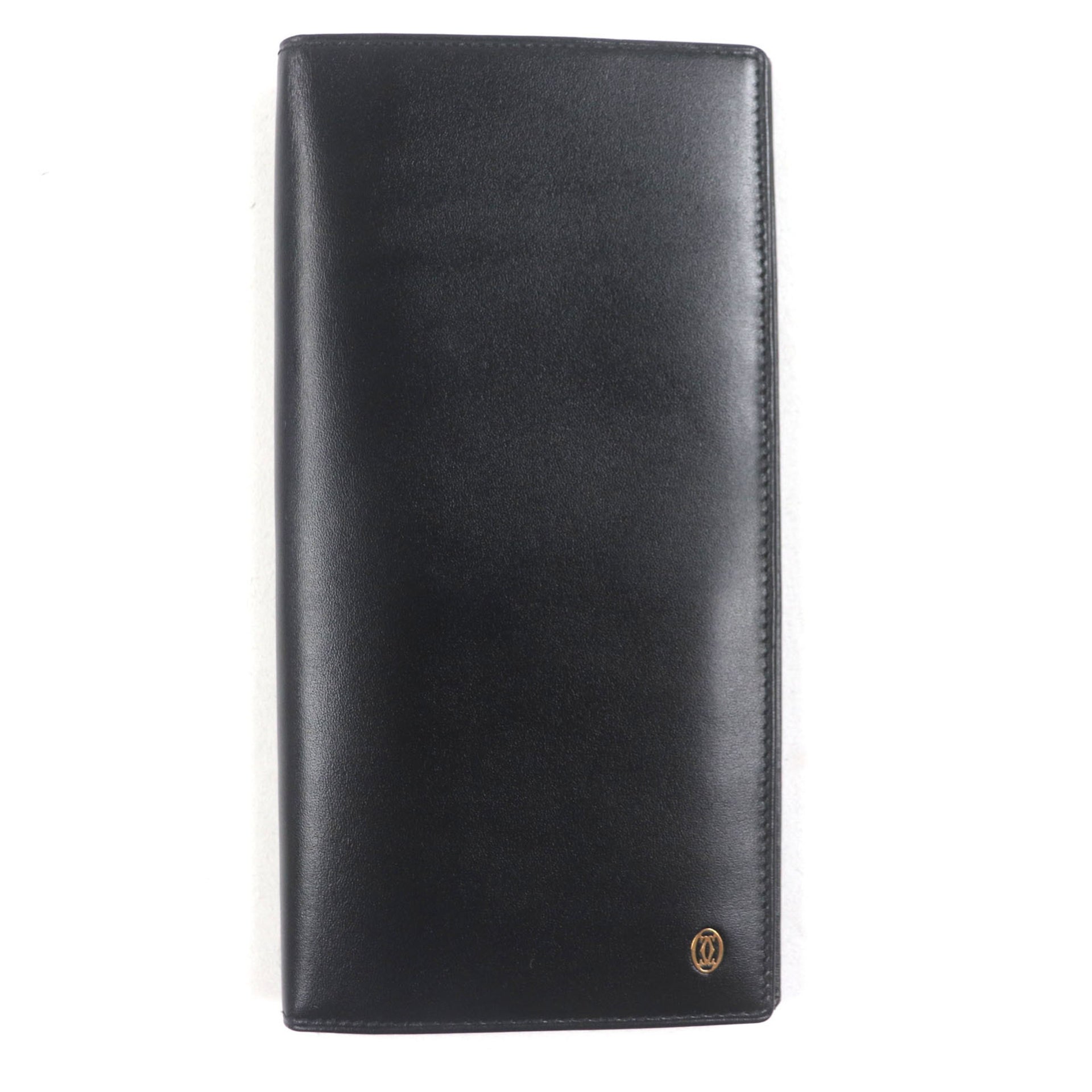 Cartier Must Line Leather Long Wallet with Logo Hardware, Black, Men\'s