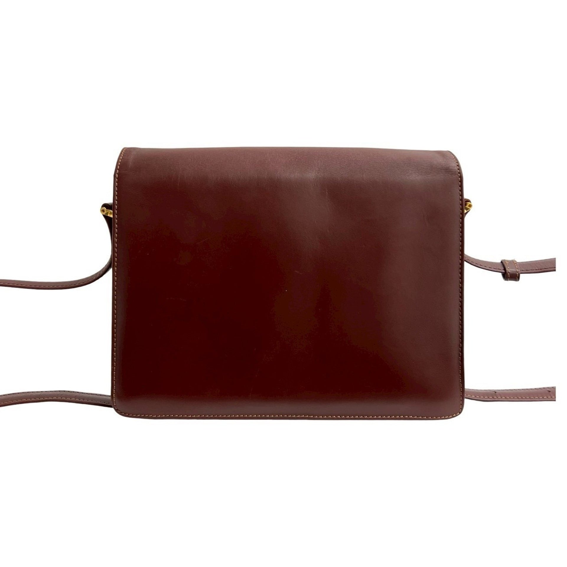 CARTIER Must Line Logo Hardware Leather One-Shoulder Bag Pochette Wine Red 45994