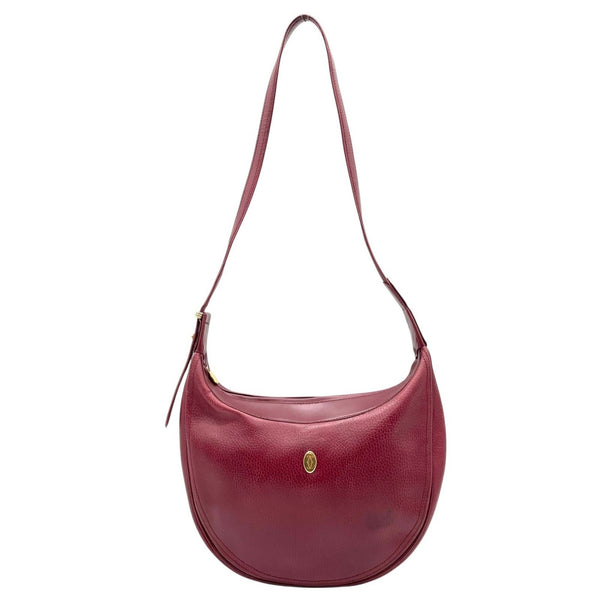 Cartier Must Line Shoulder Bag, Bordeaux/Wine Red Leather with Gold Hardware, Trinity 2C Motif, Women\'s, B4
