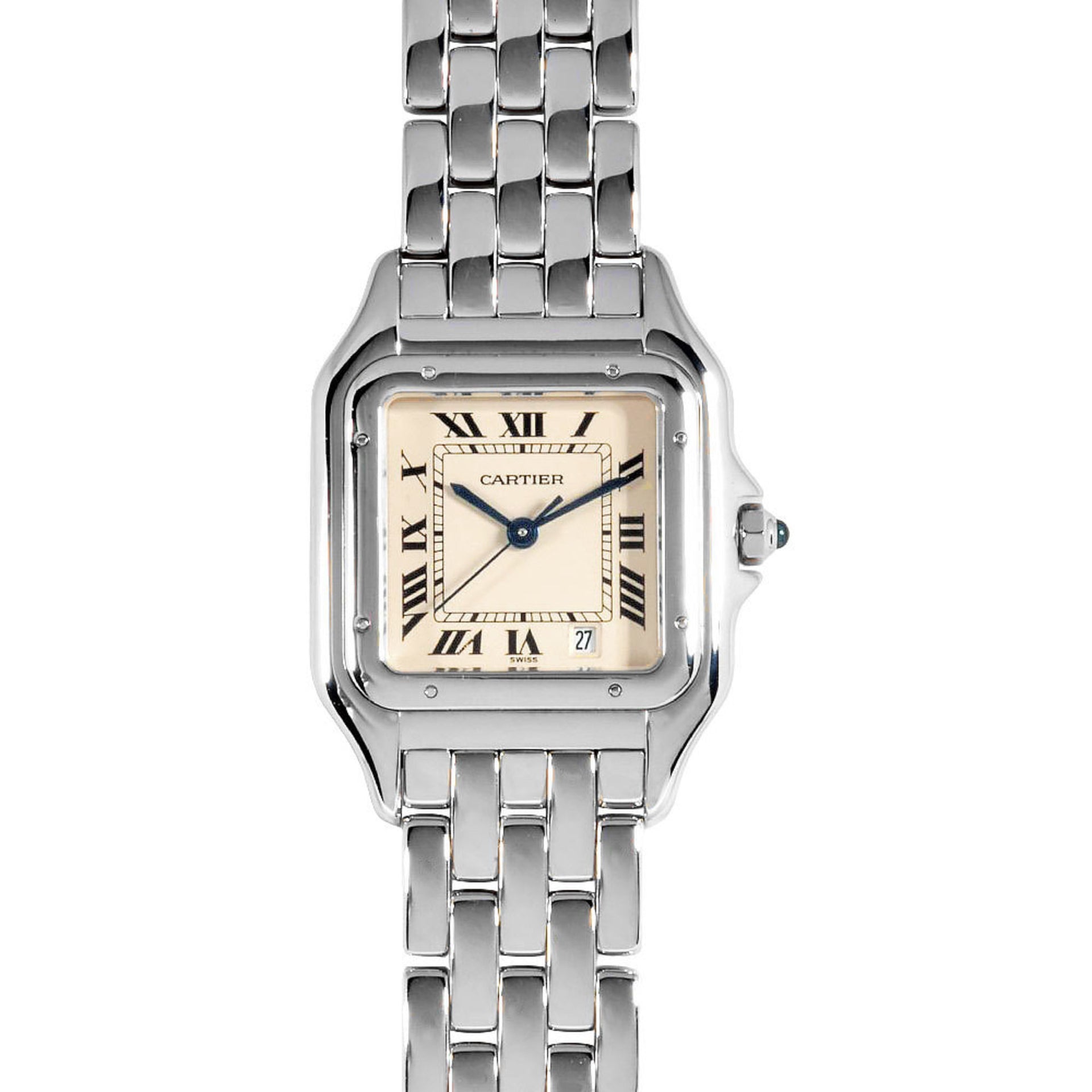Cartier Panthere SM Watch Quartz Ivory Dial Solid Gold 18KWG White 109.6g Ladies