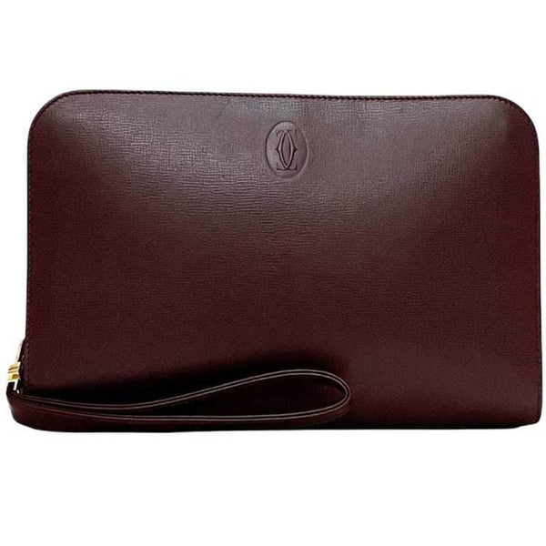 Cartier Second Bag ec-23971 Bordeaux Must Leather Strap Men\'s Wine Red Grained