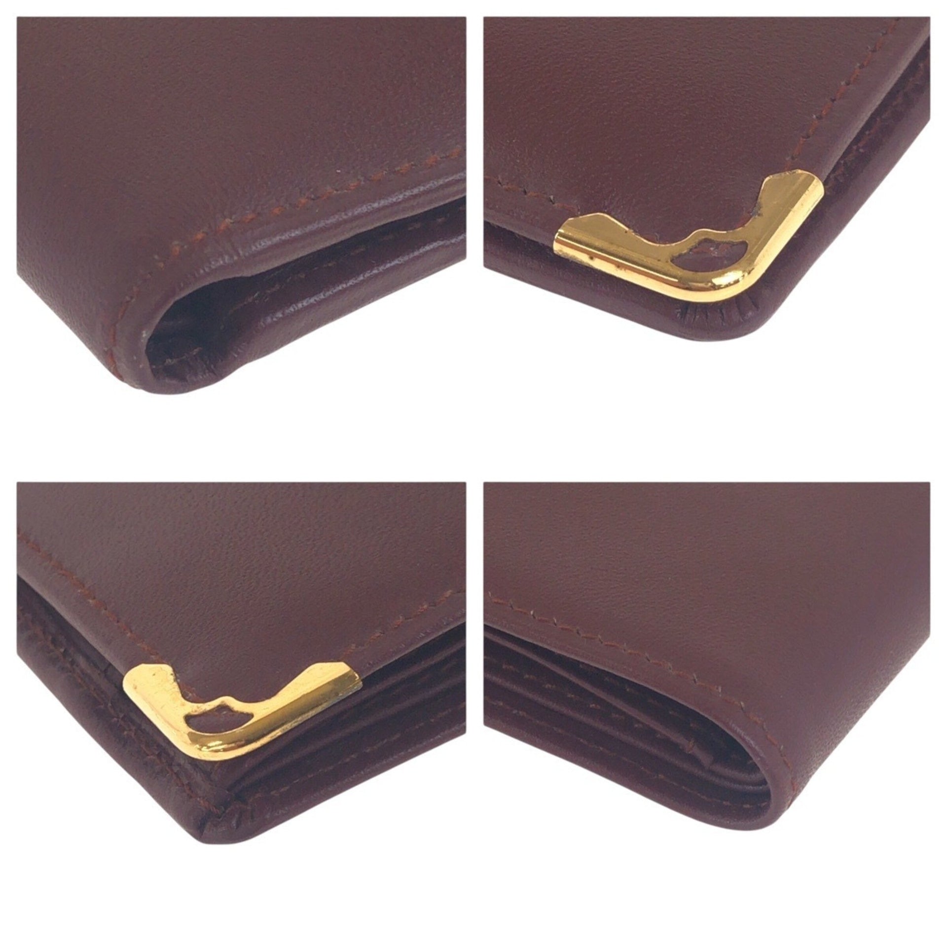 CARTIER Vintage Must Line Wine Red Bordeaux Leather Bi-fold Wallet with Gold Hardware