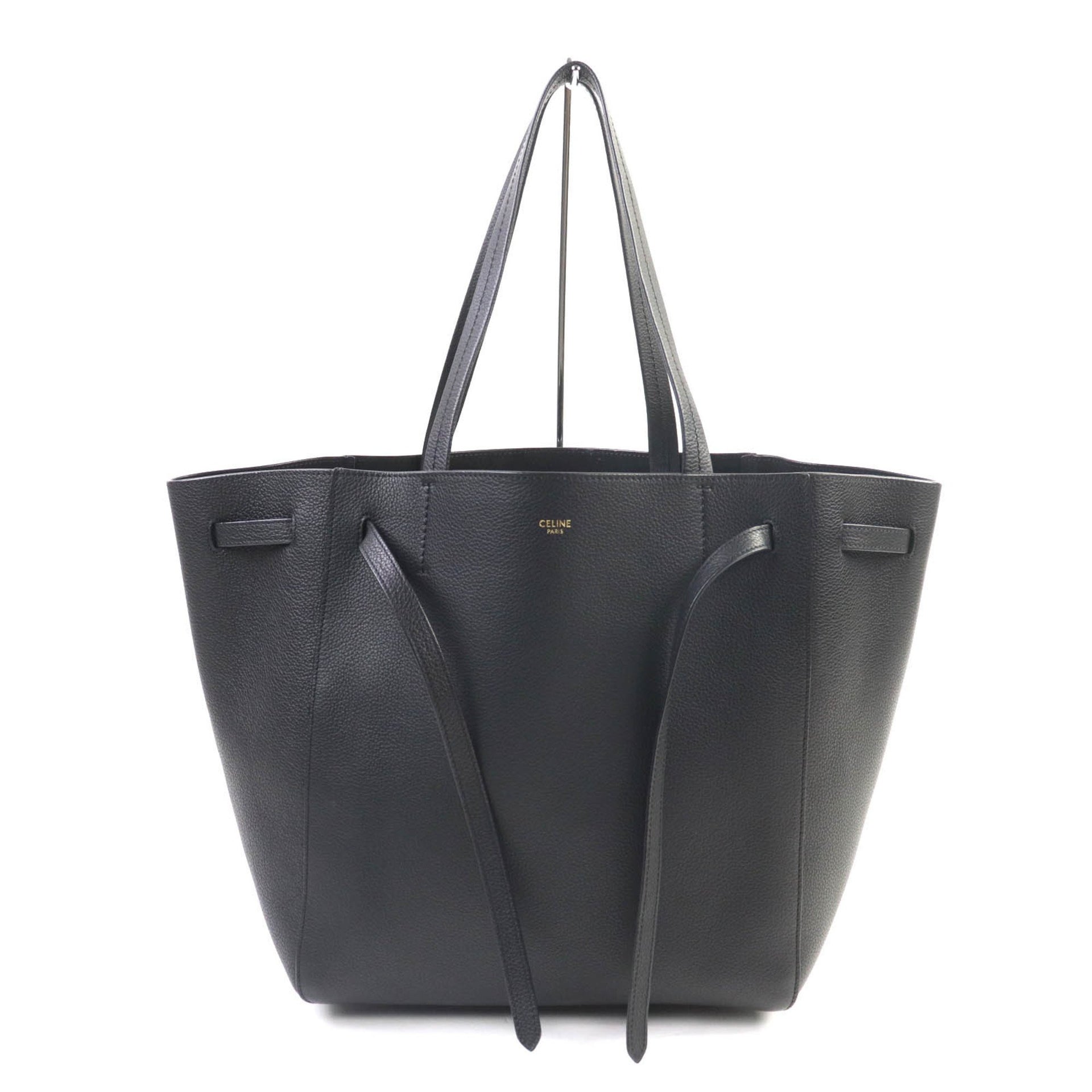 CELINE 18902 Cabas Phantom Small Soft Grain Calfskin Logo Tote Bag, Black, with Dust Made in Italy, Women\'s