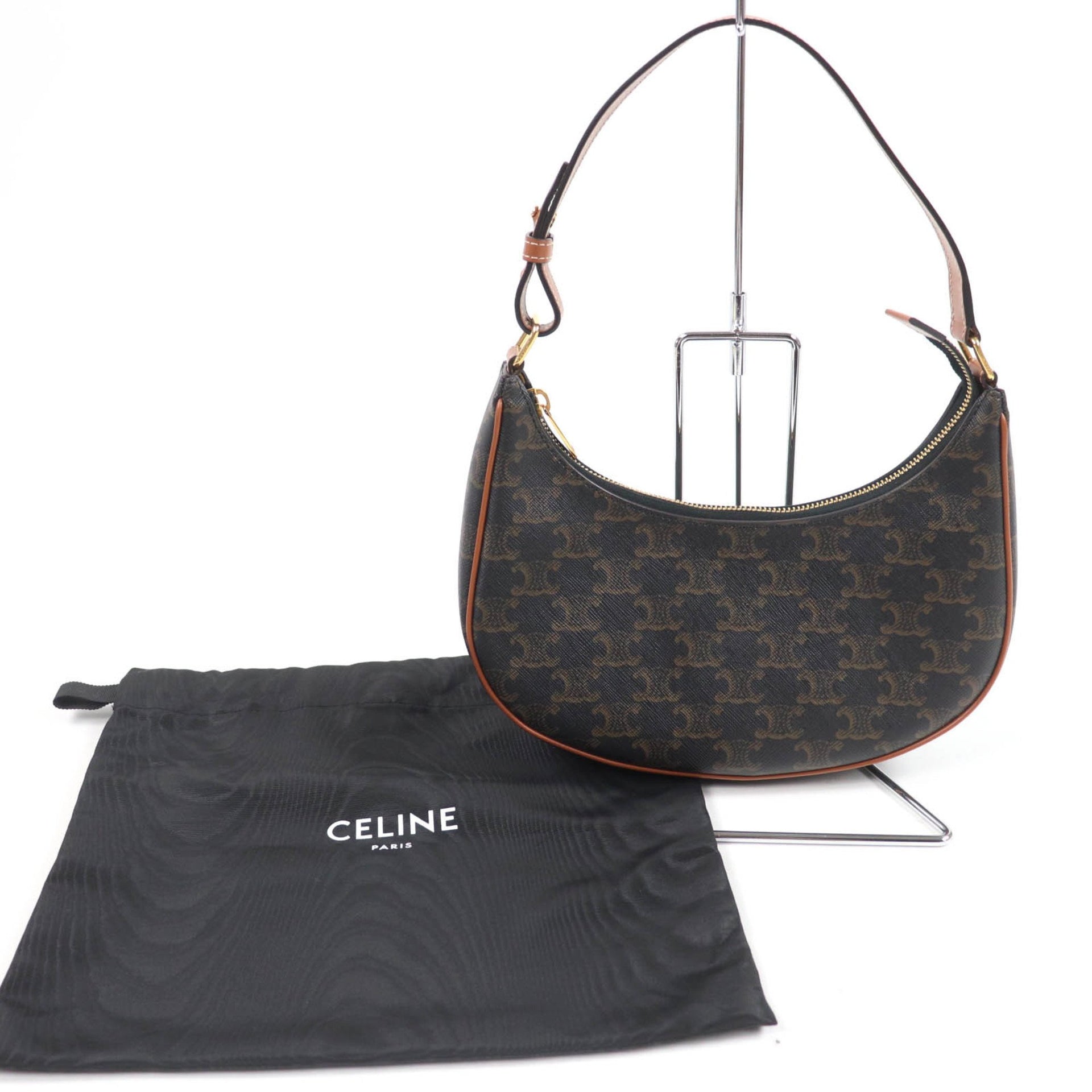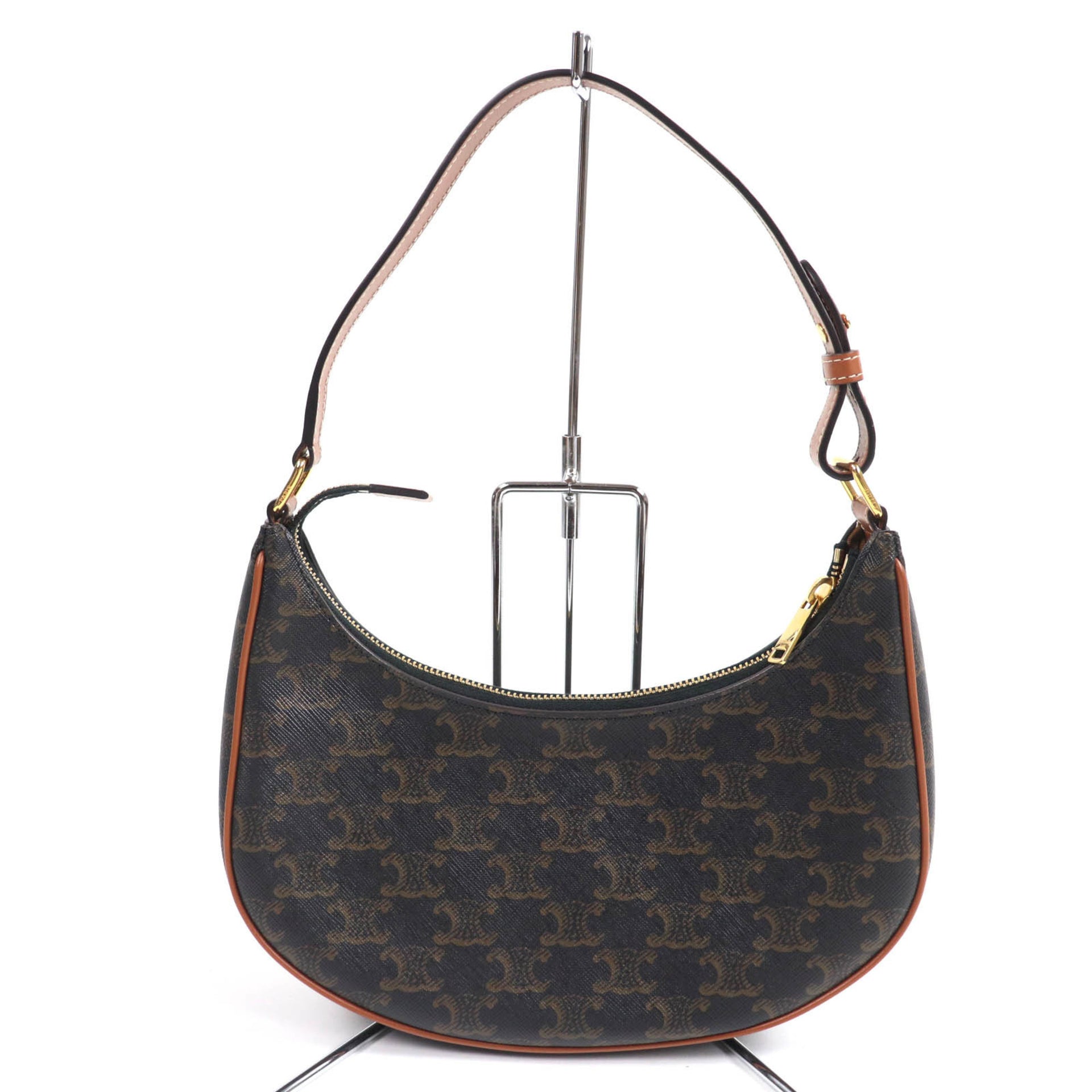 CELINE 19395 Ava Triomphe One-Shoulder Bag, Coated Canvas and Leather, Brown, Includes Dust Made in Italy, Women\'s
