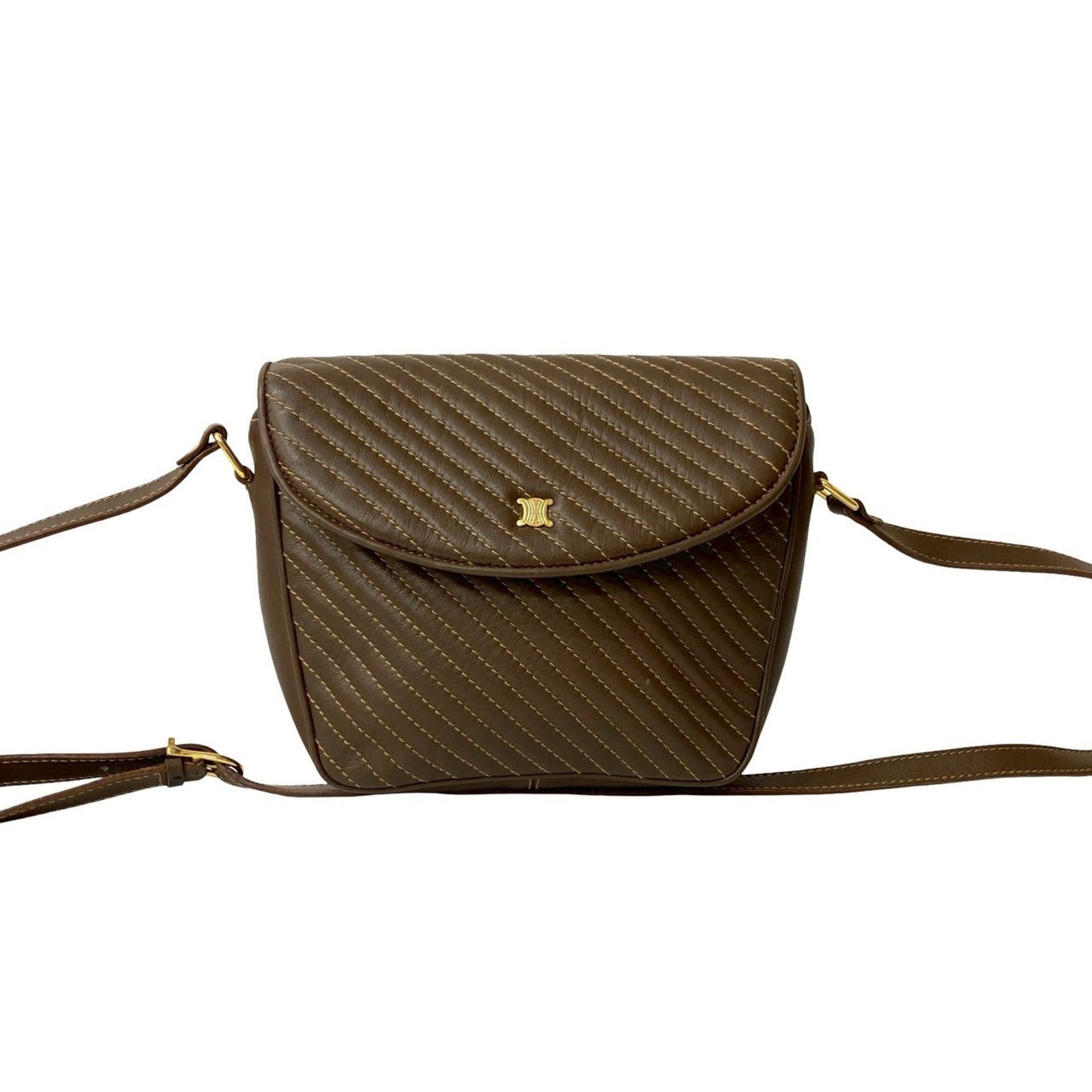 CELINE Blason Logo Leather Mini Shoulder Bag/Pochette/Body Bag Brown 27175