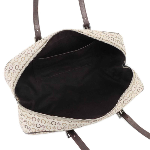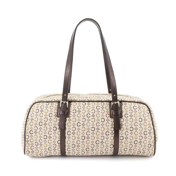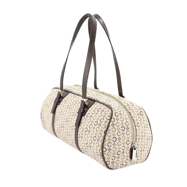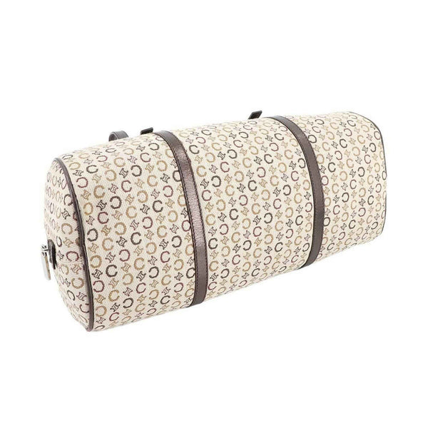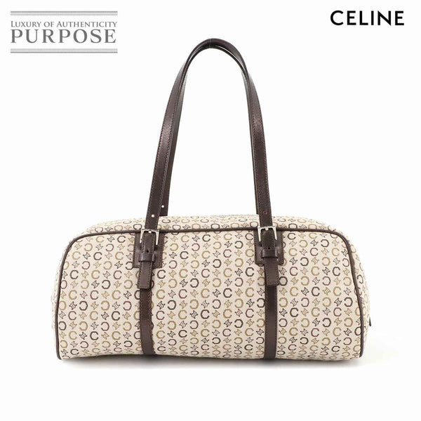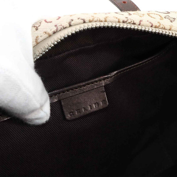 Celine C Macadam Mini Boston Handbag in Beige, Brown, and Silver Hardware.