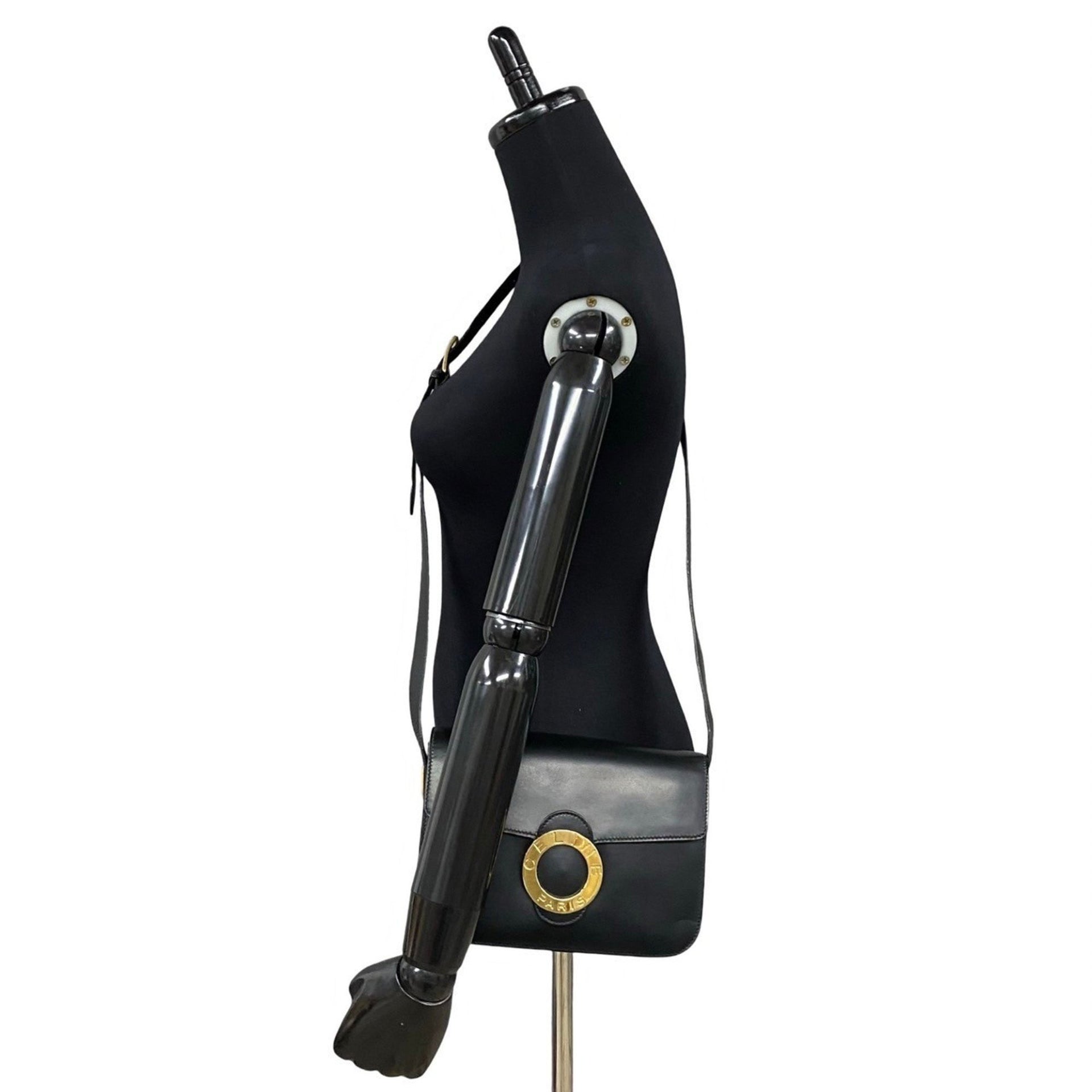 CELINE Circle Logo Hardware Leather Mini Shoulder Bag Pochette Black 90018