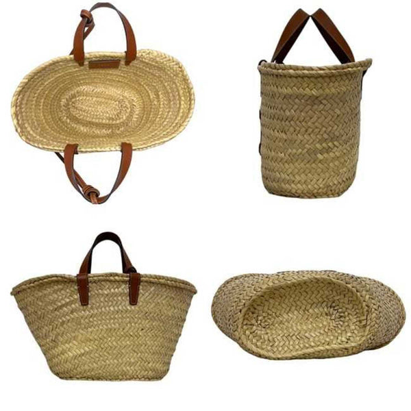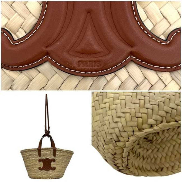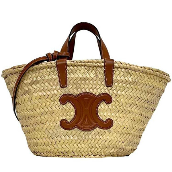 Celine Classic Pannier Tote f-24457 Beige Brown Triomphe 194002CGG Raffia Leather F-AT-2293 CELINE Basket for Men and Women