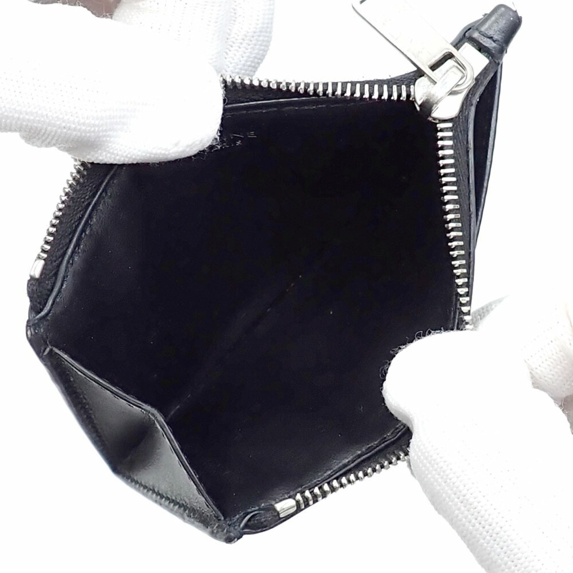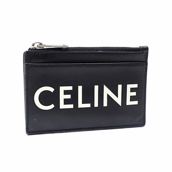 Celine Coin Case and Card Zip Holder Black White Leather 10F993DMF.38SI Fragment Purse for Women Men