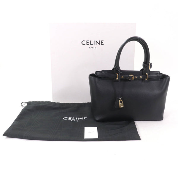 CELINE Conti Bag 19987, Grained Calfskin Supple, Logo Padlock with Key, Black, Includes Box and Dust Bag, Women\'s