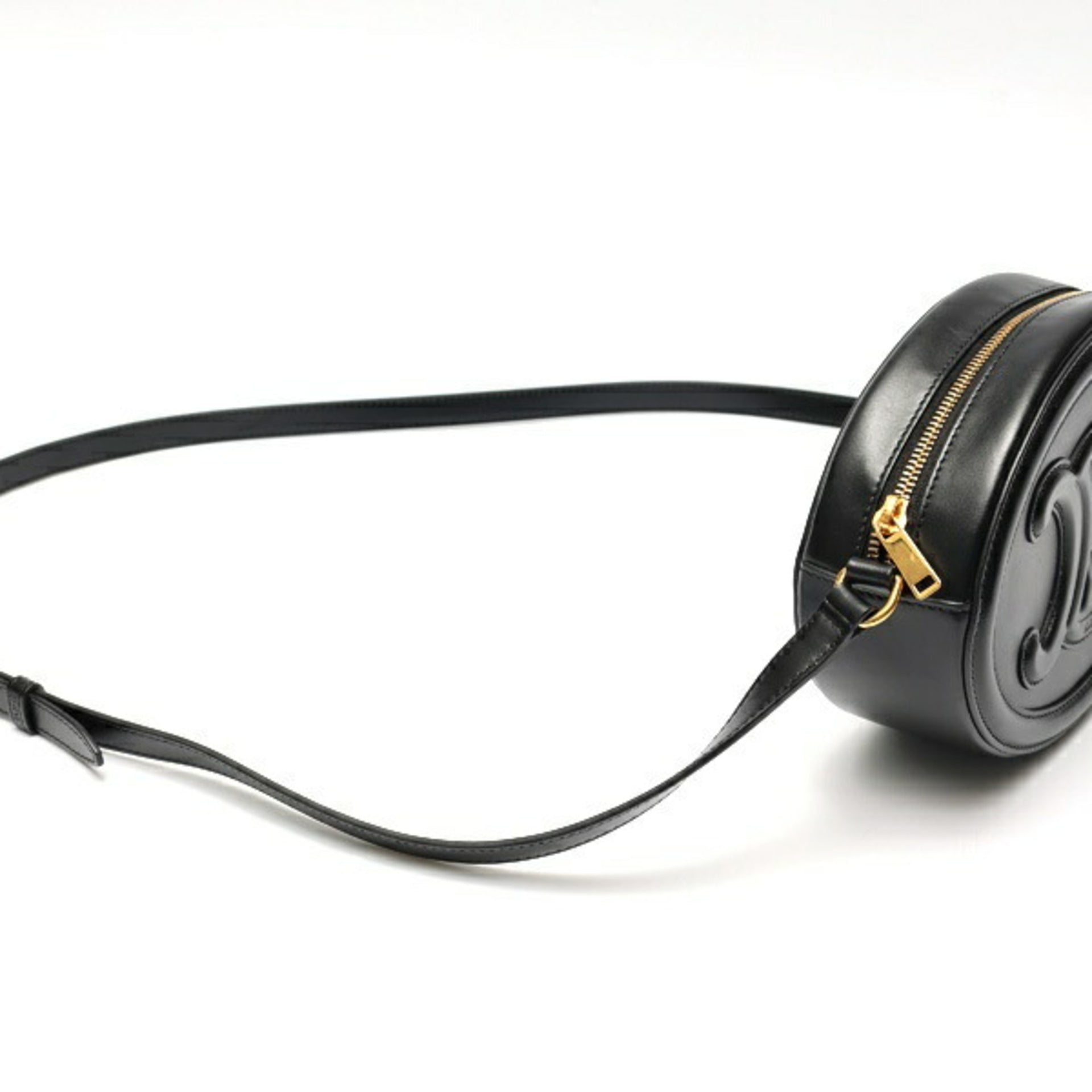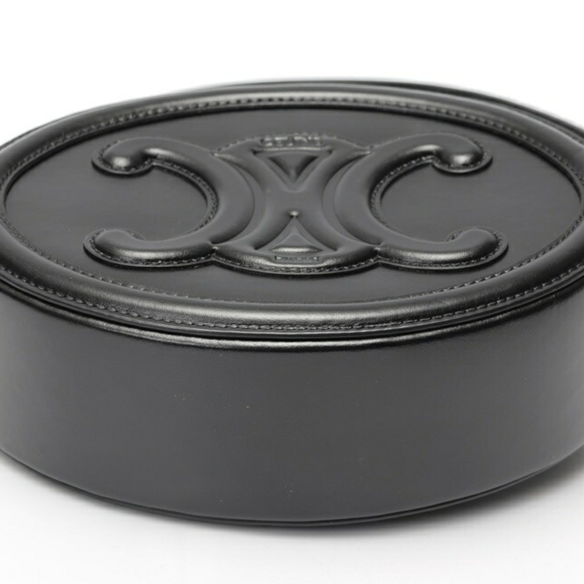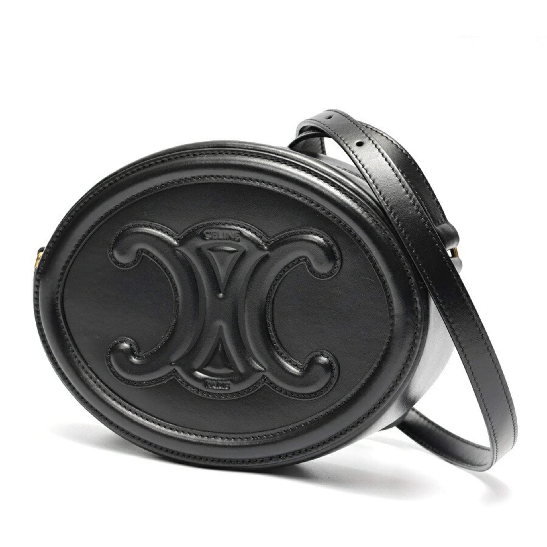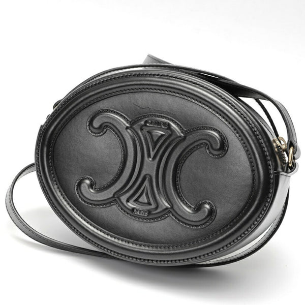 Celine Cuir Triomphe Oval Bag Shoulder 19860 Leather Black S-159524