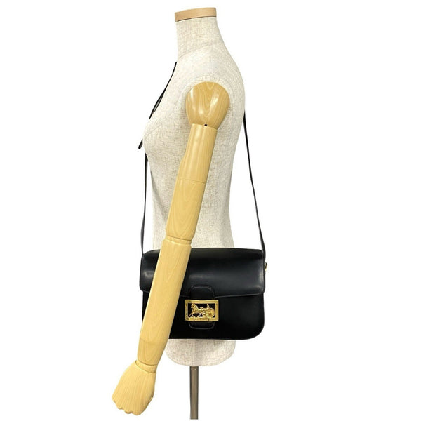 CELINE Horse-Drawn Carriage Hardware Calfskin Leather Shoulder Bag/Pochette/Sacoche in Black (23751)