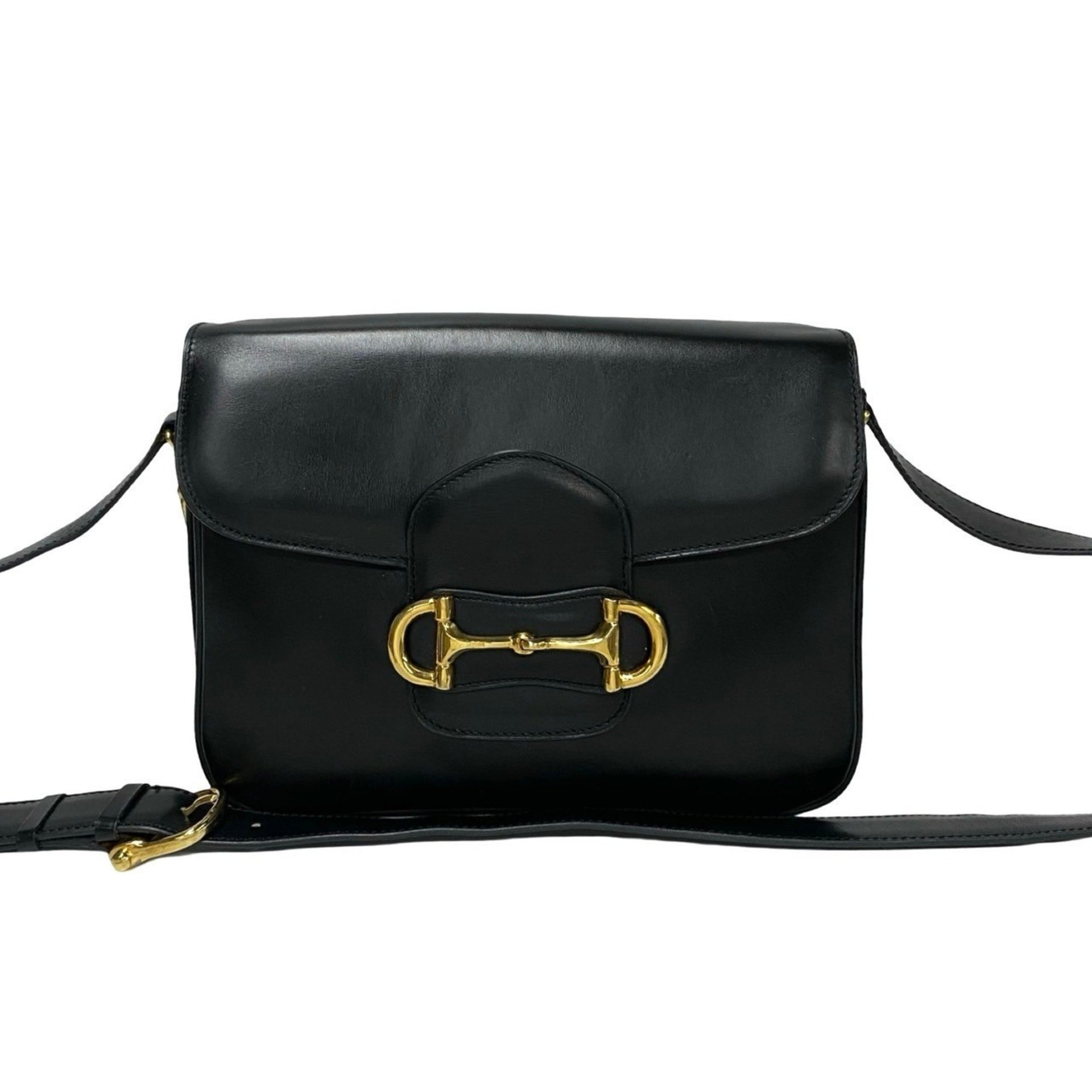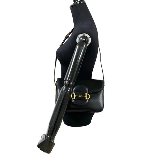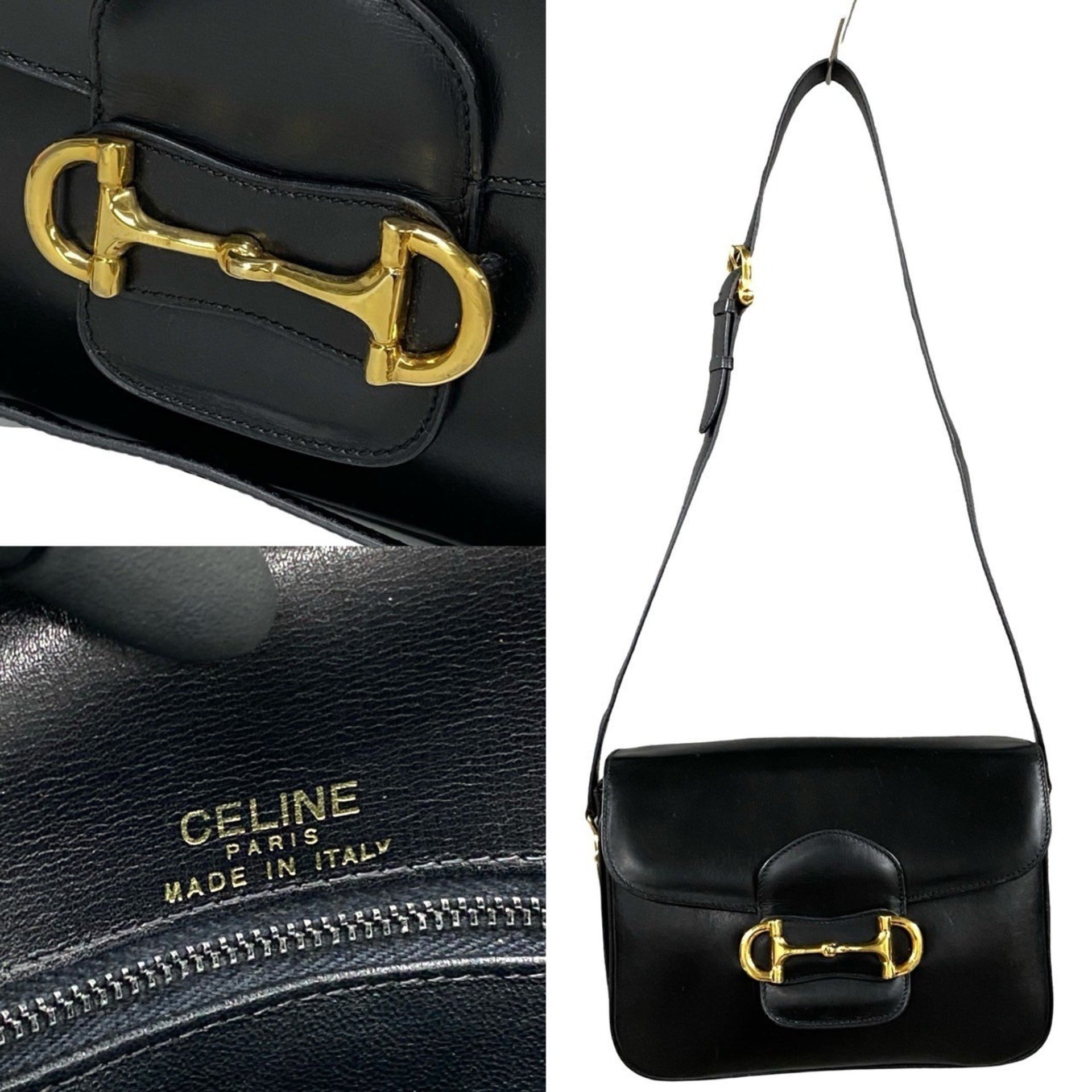 CELINE Horsebit Leather Shoulder Bag/Pochette/Sacoche in Black (54285)