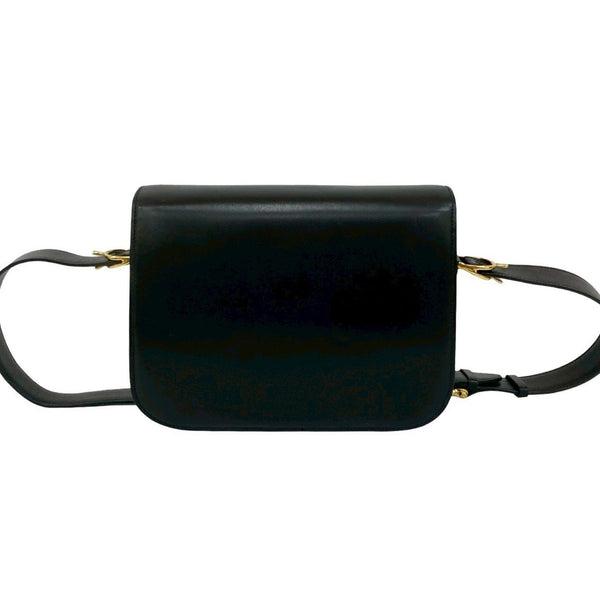 CELINE Logo Carriage Calf Leather Shoulder Bag Pochette Black 54167