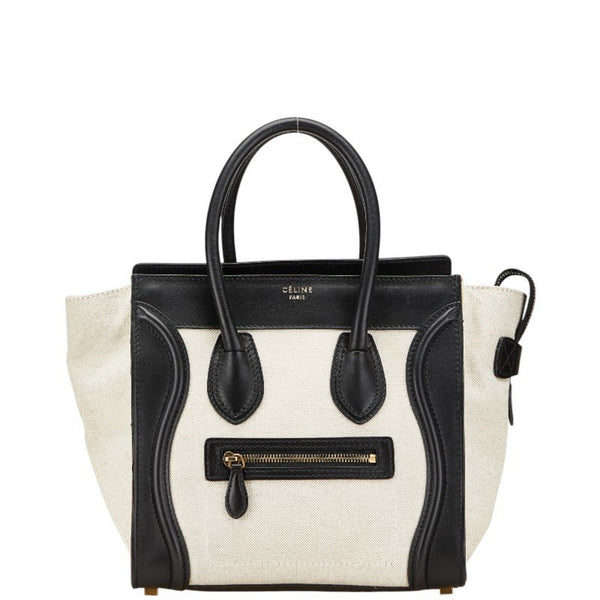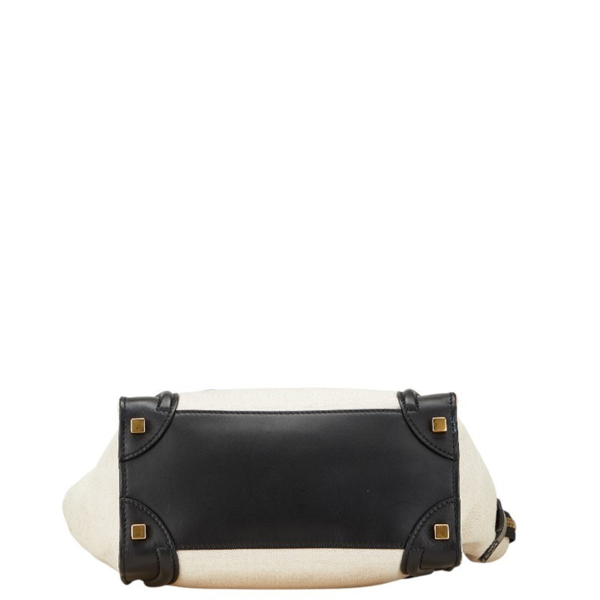Celine Luggage Micro Shopper Handbag in Black and White Canvas Leather for Women.