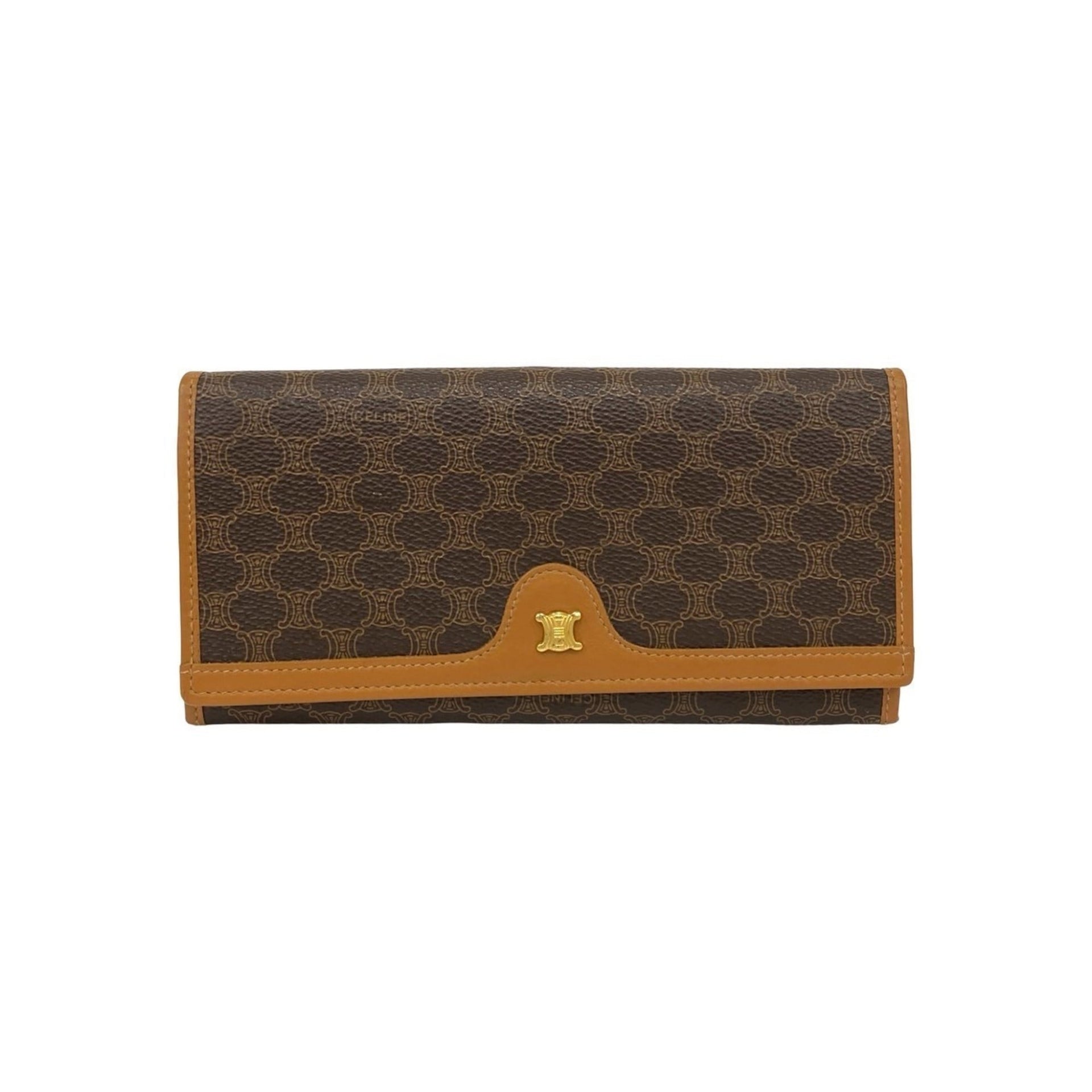 CELINE Macadam Blason Triomphe Logo Leather Long Wallet, Brown, 72203