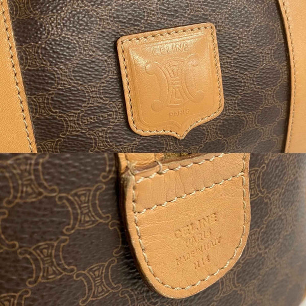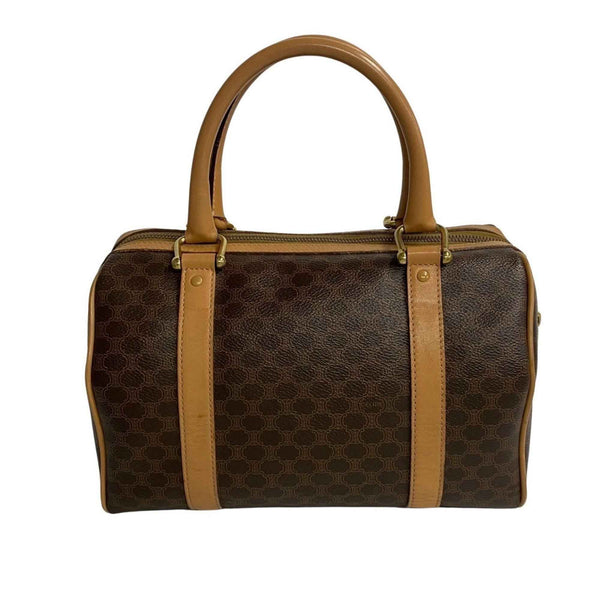 CELINE Macadam Blason Triomphe Pattern Leather Handbag Boston Bag Brown 19338