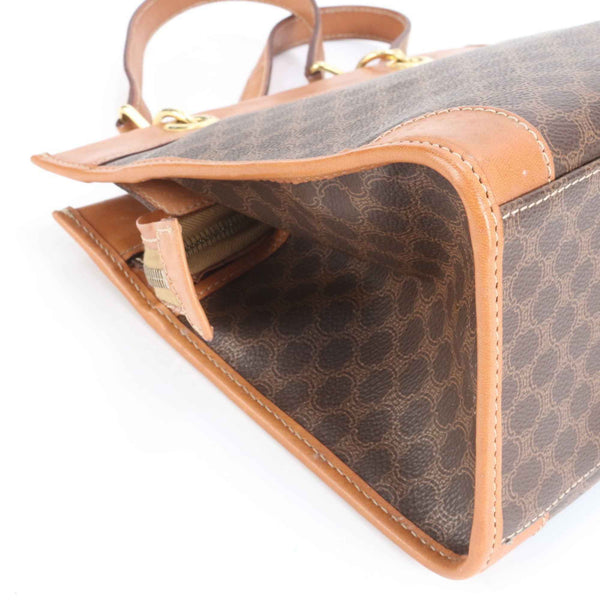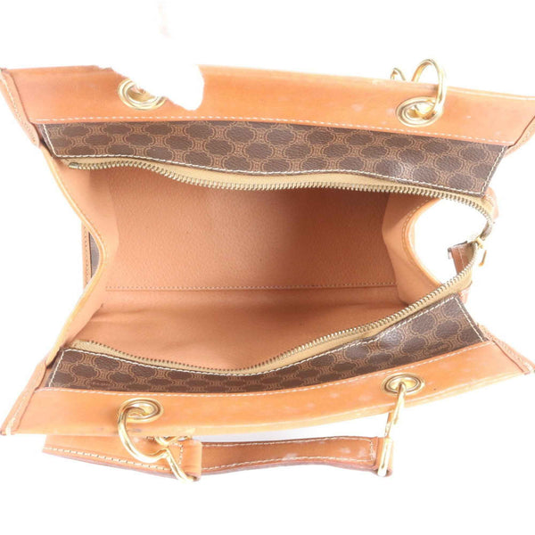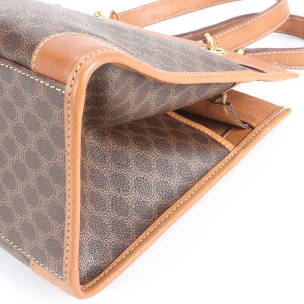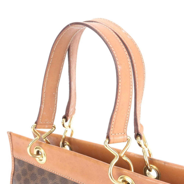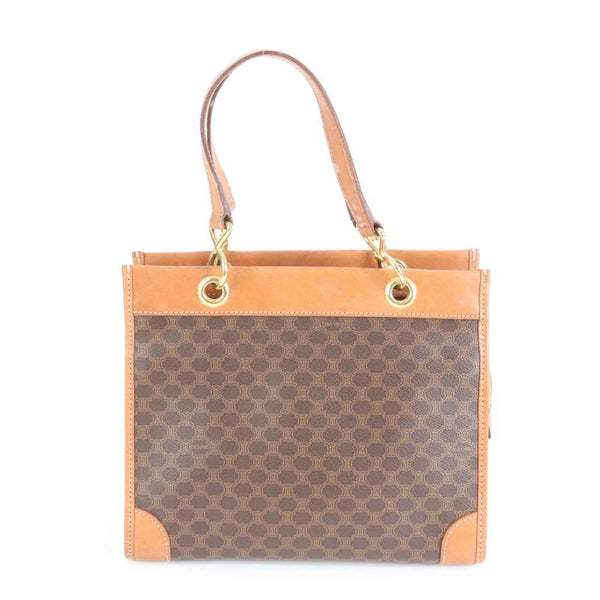 Celine Macadam Leather Tote Bag, Shoulder Handbag, Brown, Women's