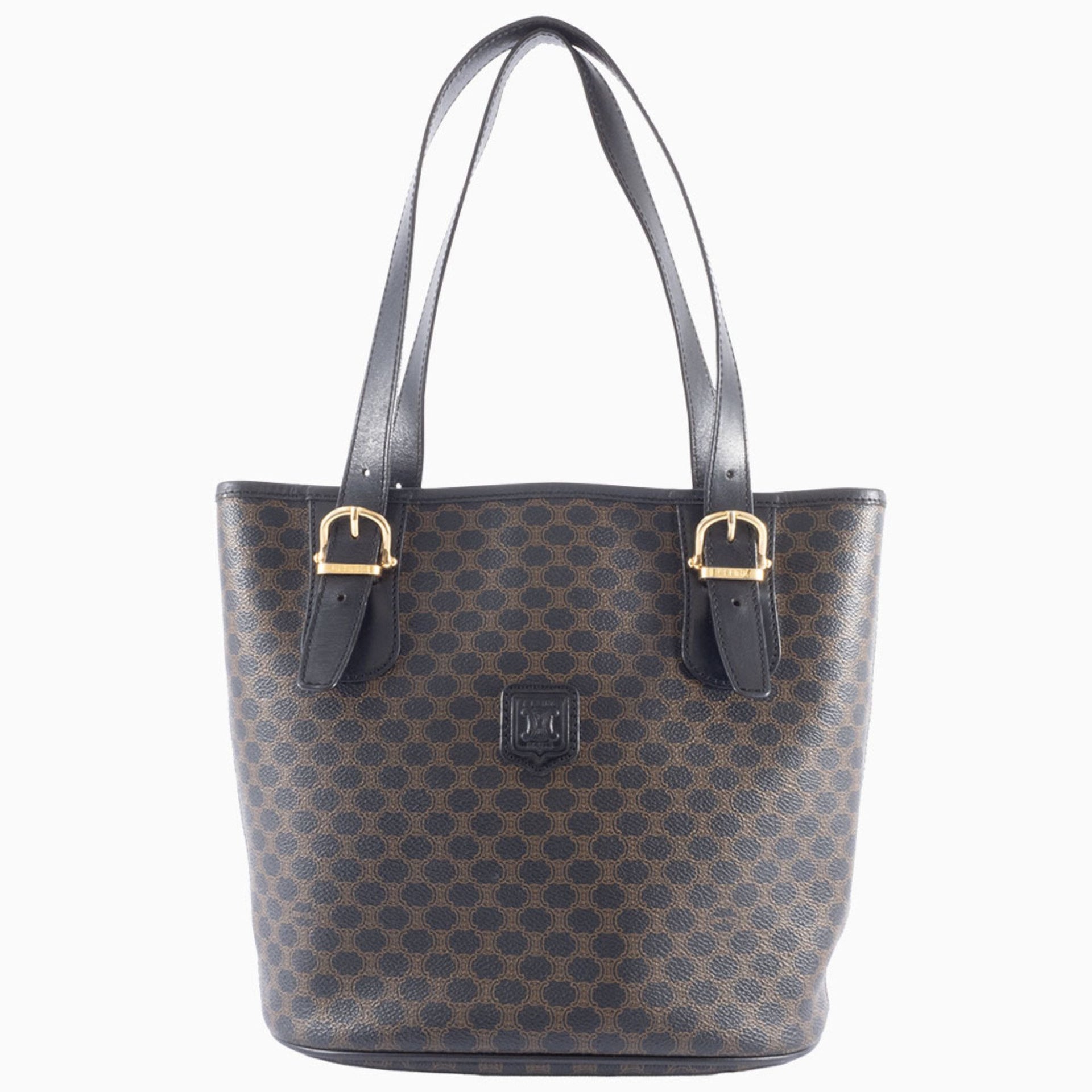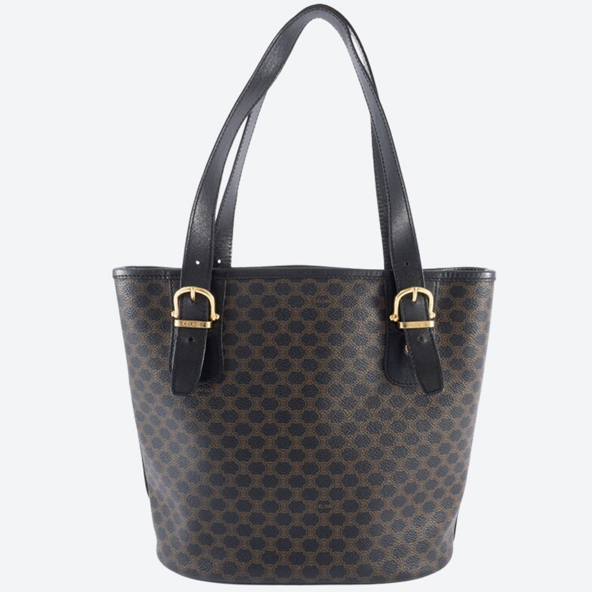 Celine Macadam Tote Bag in PVC/Leather, Black, Women\'s, Old Blazon, CELINE