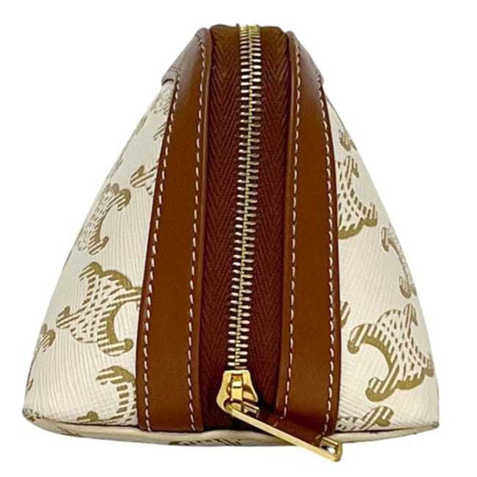 Celine Mini Pouch f-24383 White/Brown Triomphe Print 4M1622CZJ PVC Leather W-IE-3274 Men\'s/Women\'s