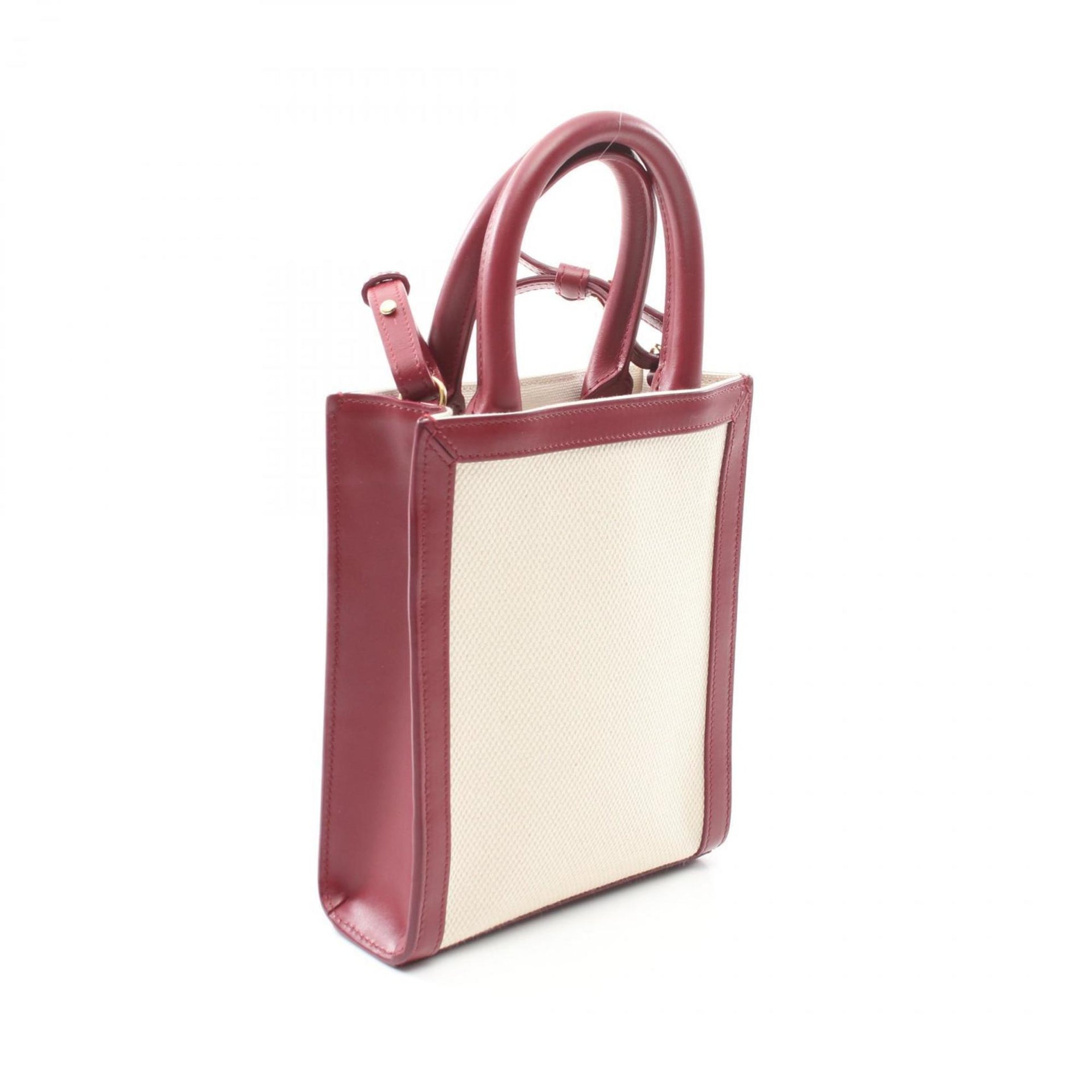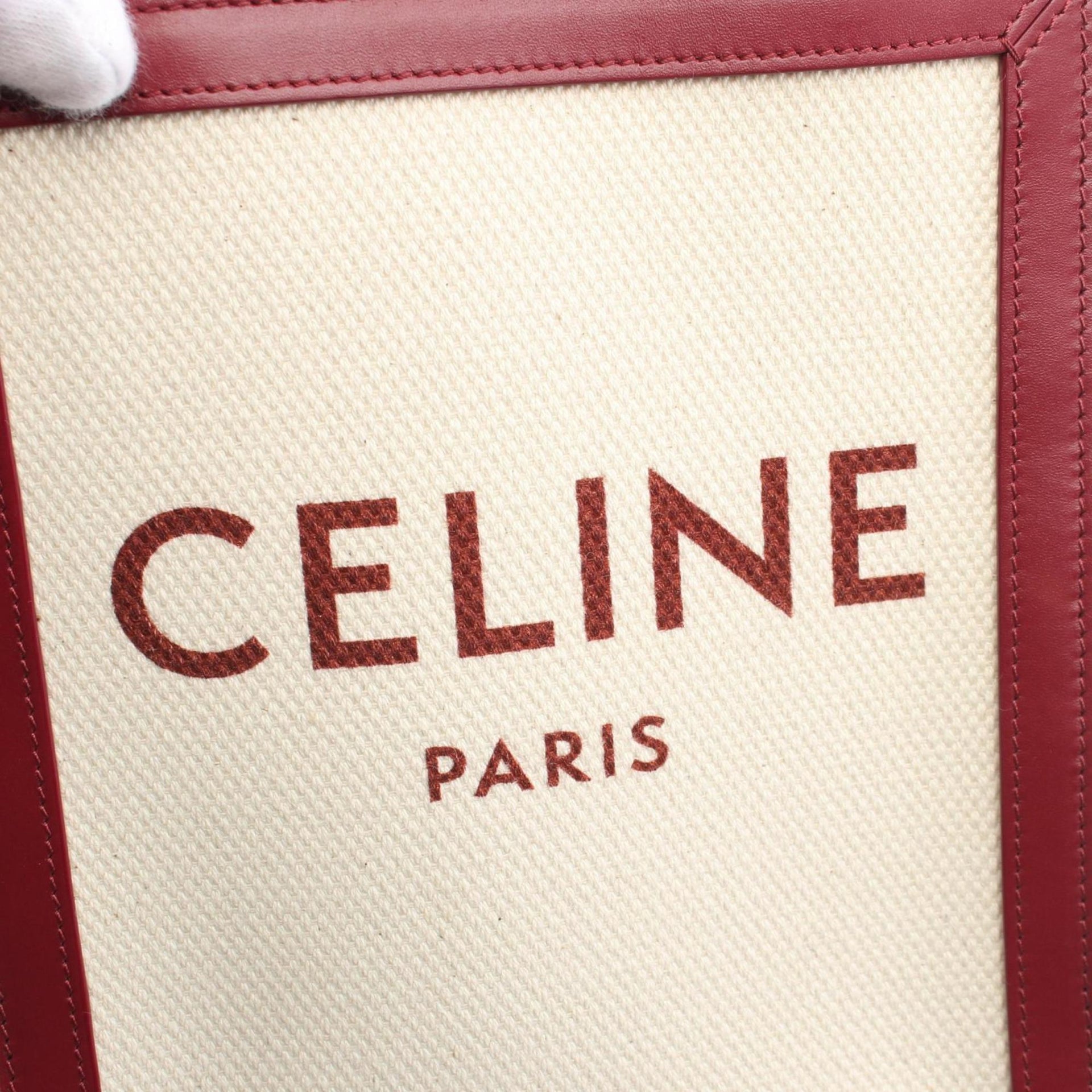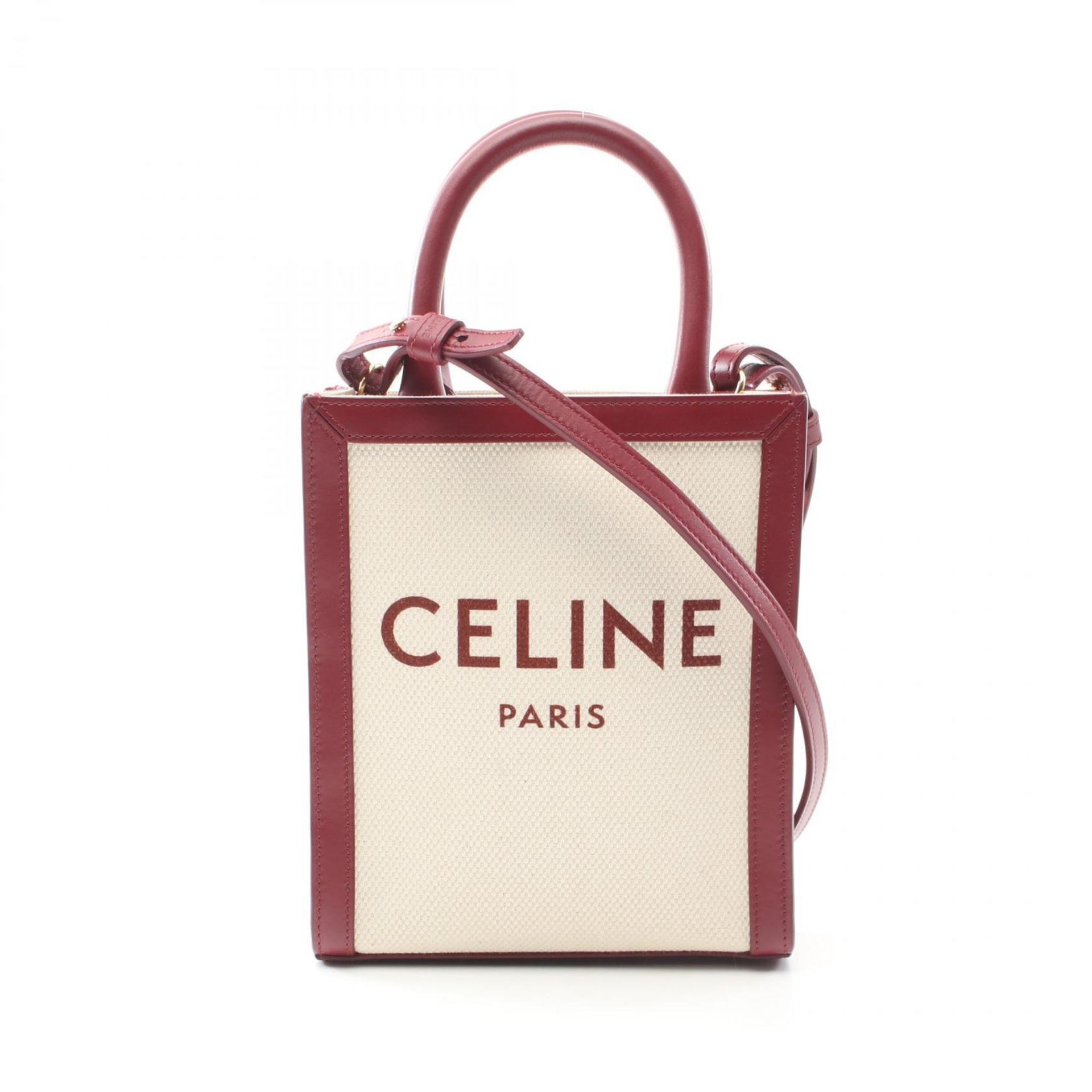 CELINE Mini Vertical Cabas Handbag Canvas Leather Women\'s Ivory Bordeaux