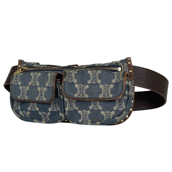 Celine Paris Macadam Waist Bag/Body Bag in Denim Blue and Brown for Women