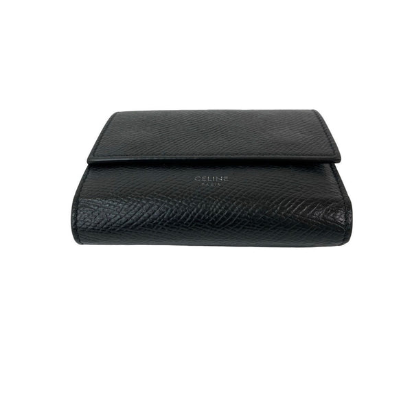 CELINE Small Trifold Logo Leather Tri-fold Wallet, Mini, Black, 46845