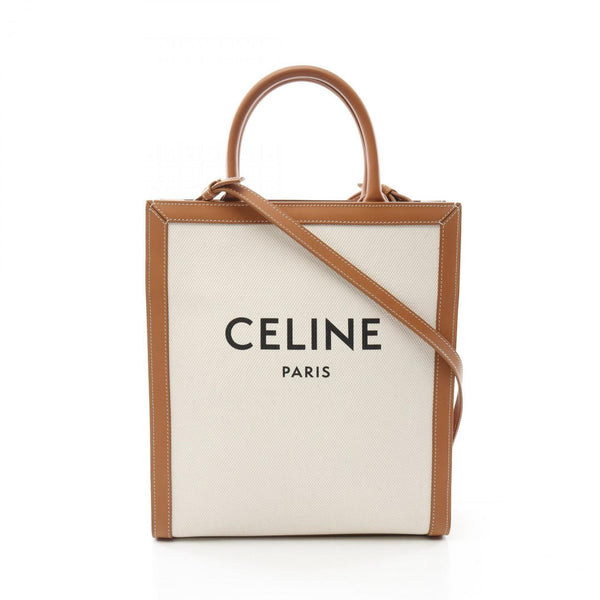 Celine Small Vertical Cabas Tote Bag, Canvas and Leather, Women\'s, White Brown, 192082BNZ