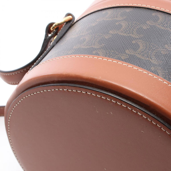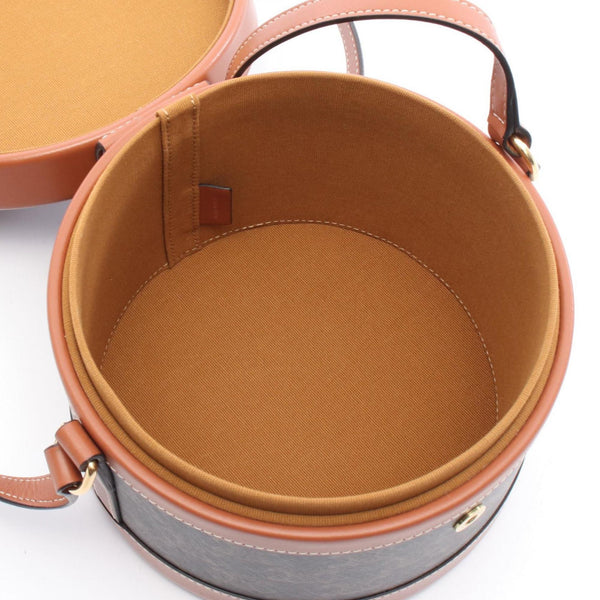 Celine Tambour Medium Triomphe Shoulder Bag in PVC-Coated Canvas and Leather, Brown, Women\'s, 19519