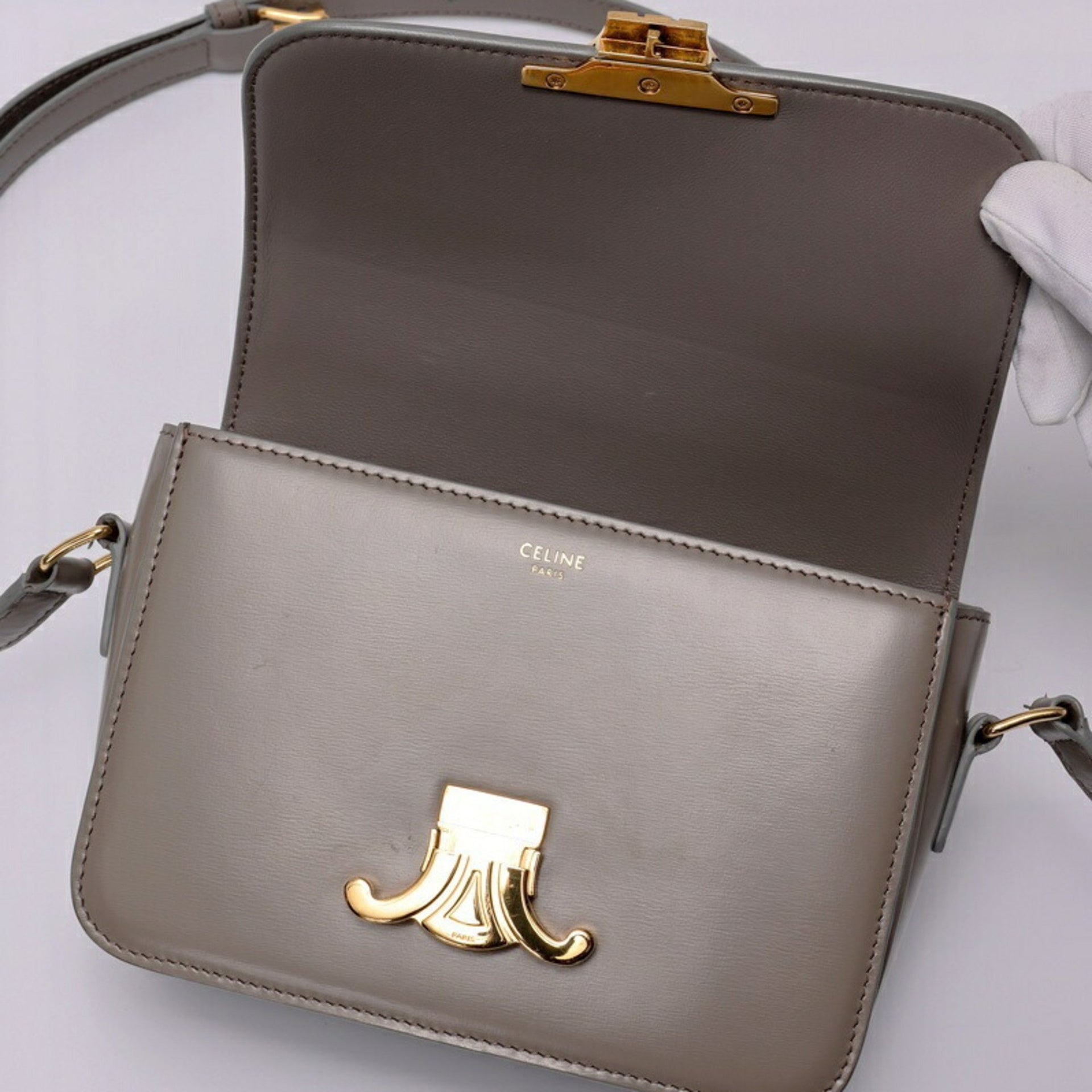 CELINE Teen Triomphe Bag Shoulder 188423BF4.10BL Shiny Calfskin Pebble K-158410