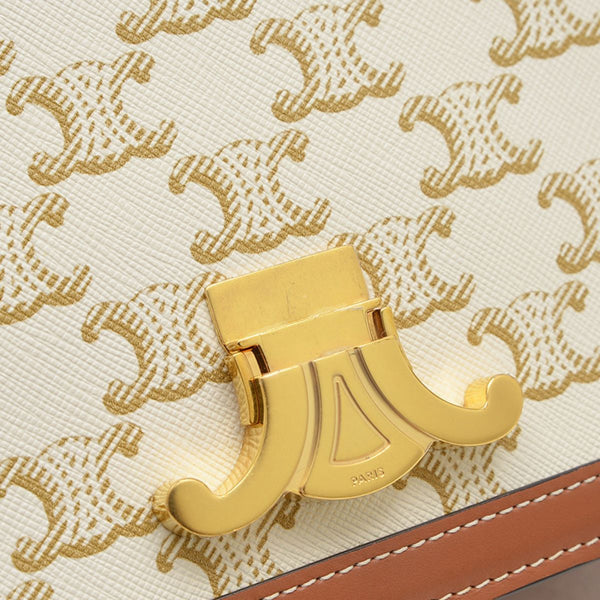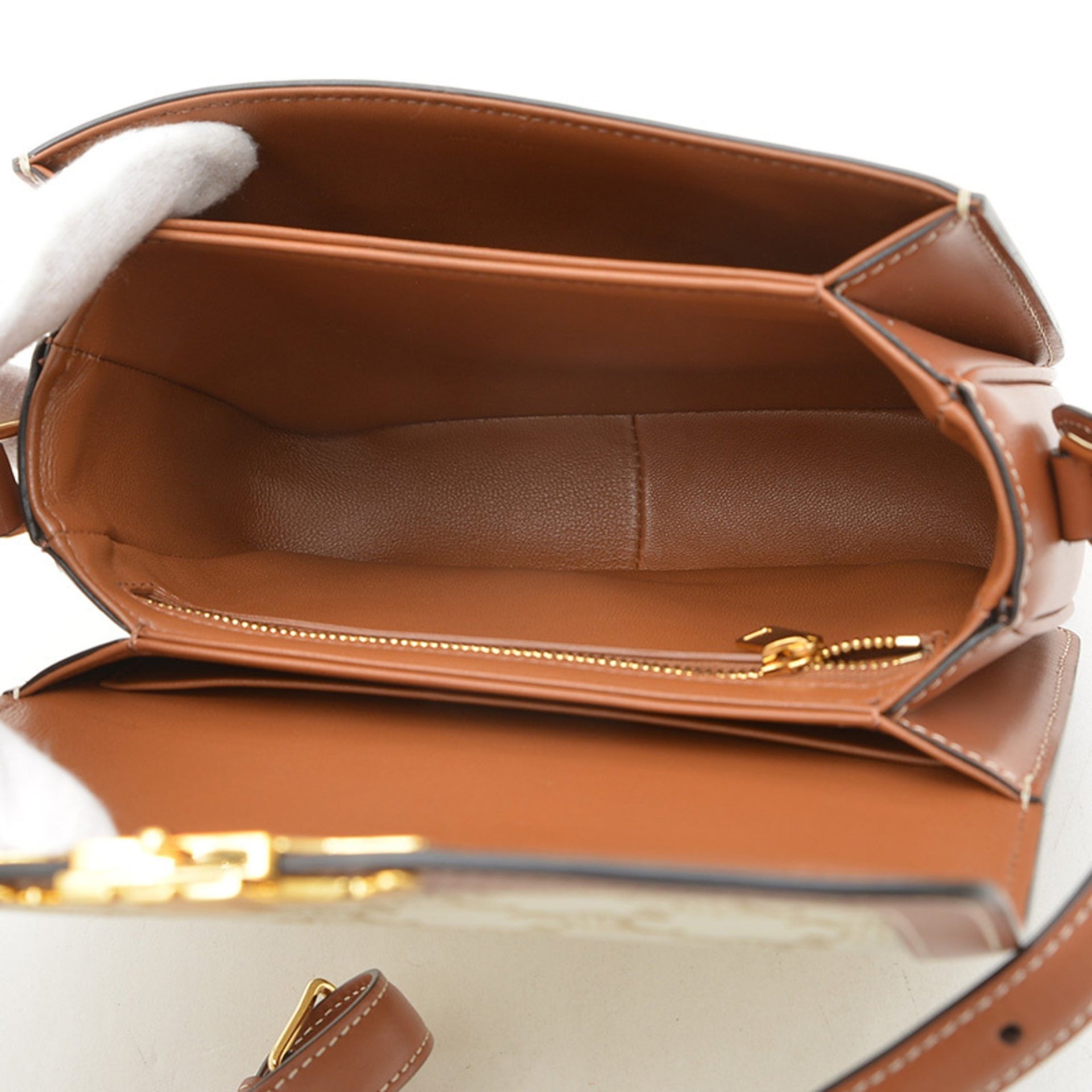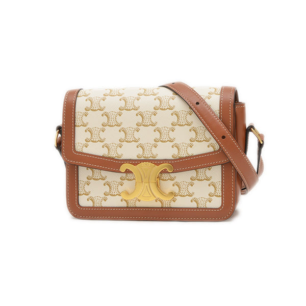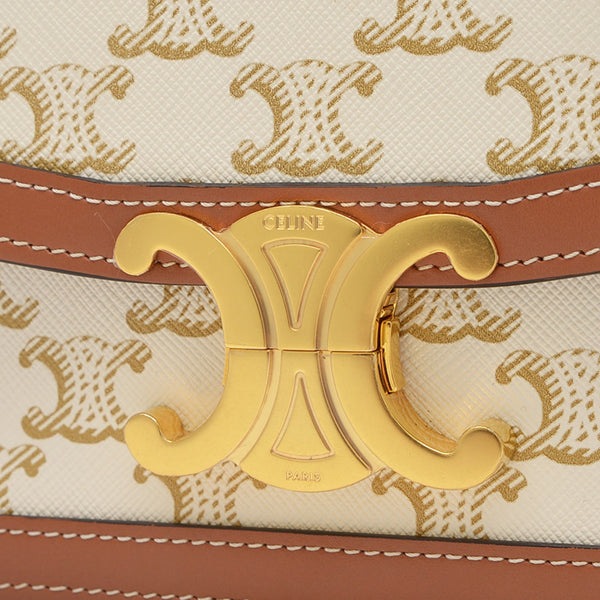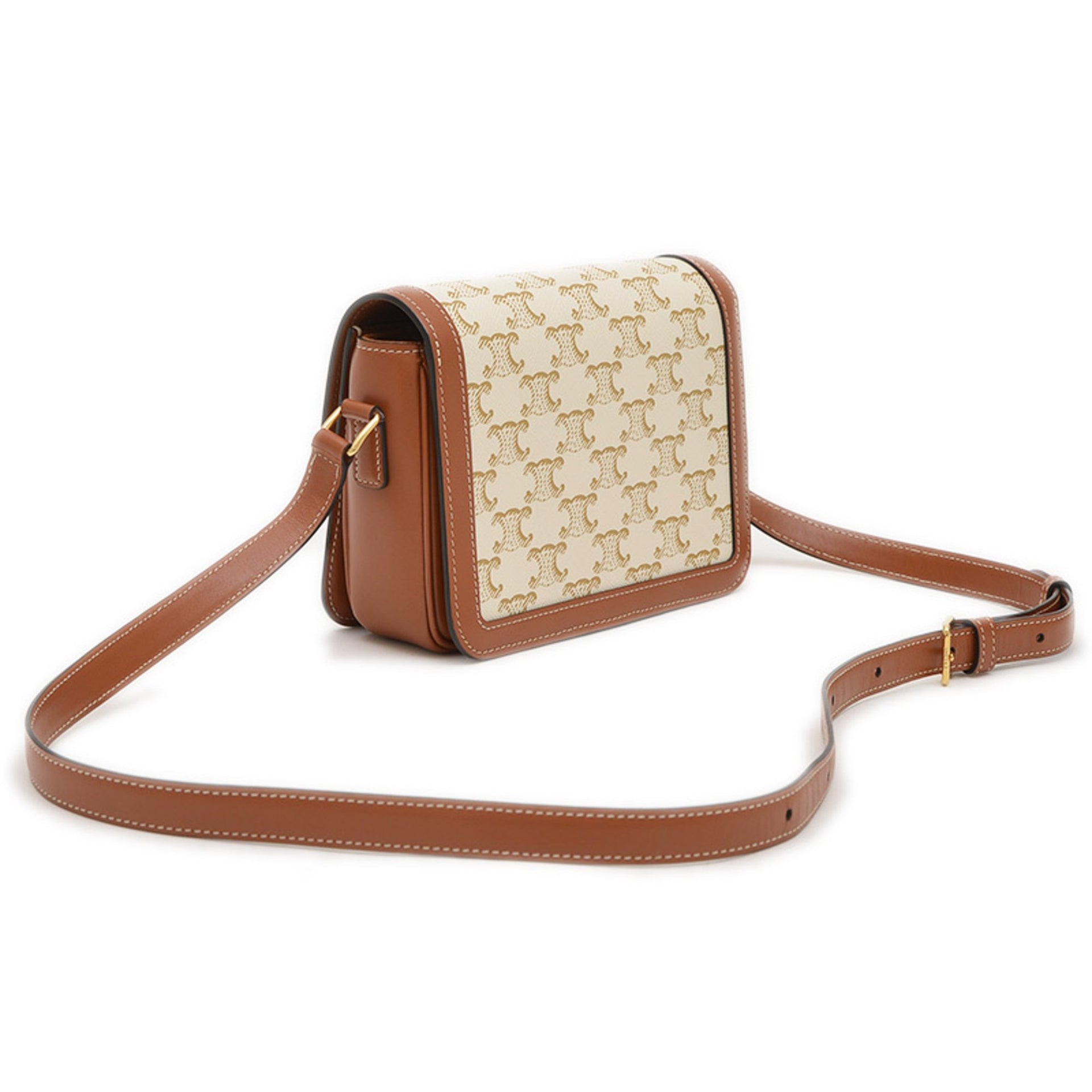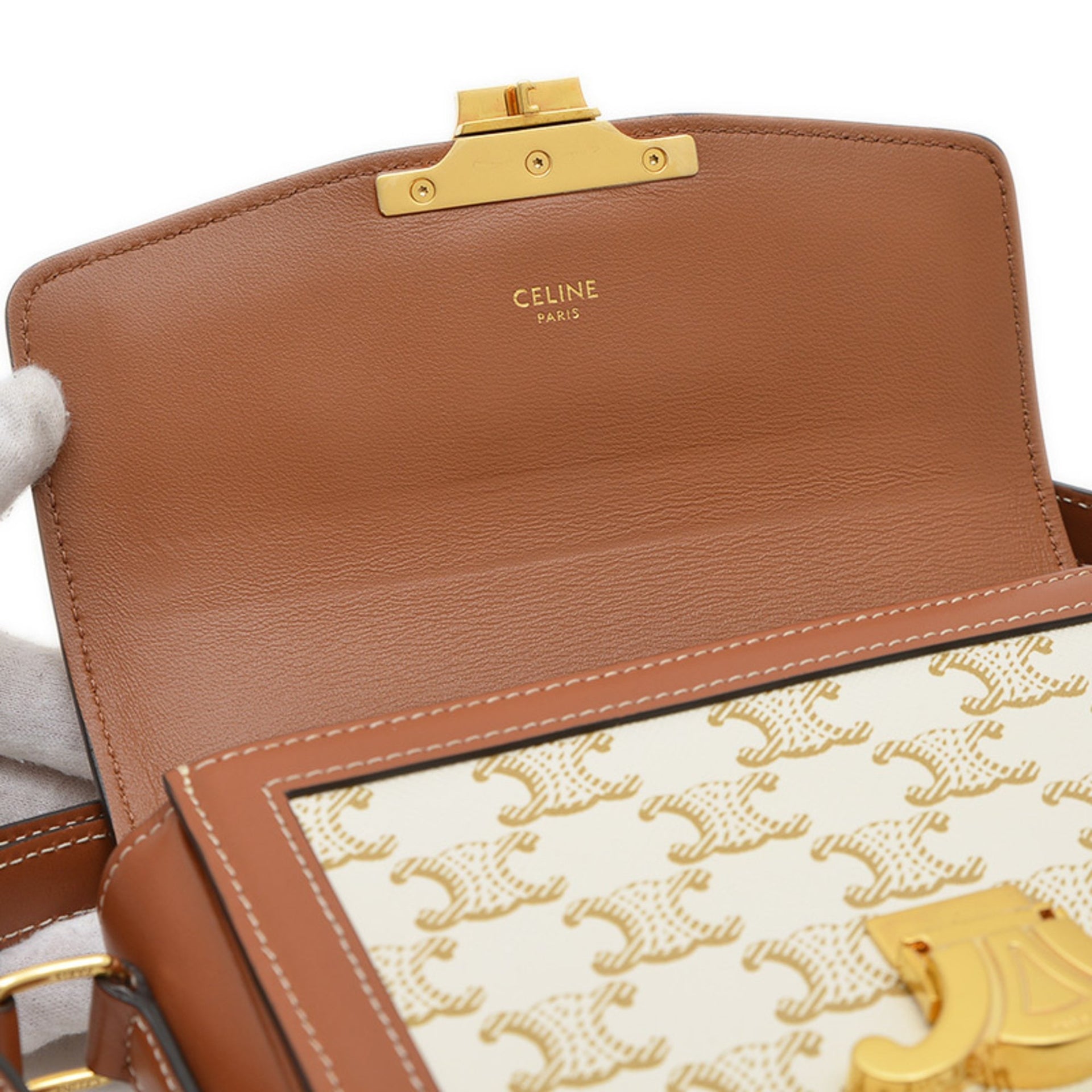 Celine Teen Triomphe Shoulder Bag Canvas Leather White Tan 188882 BP