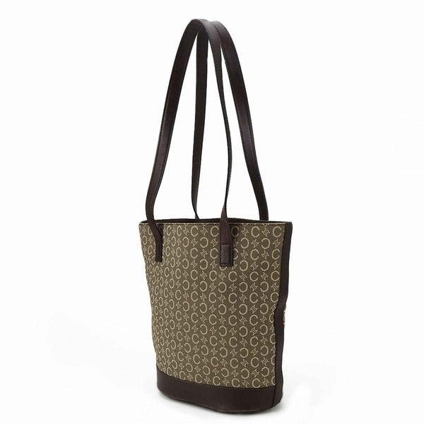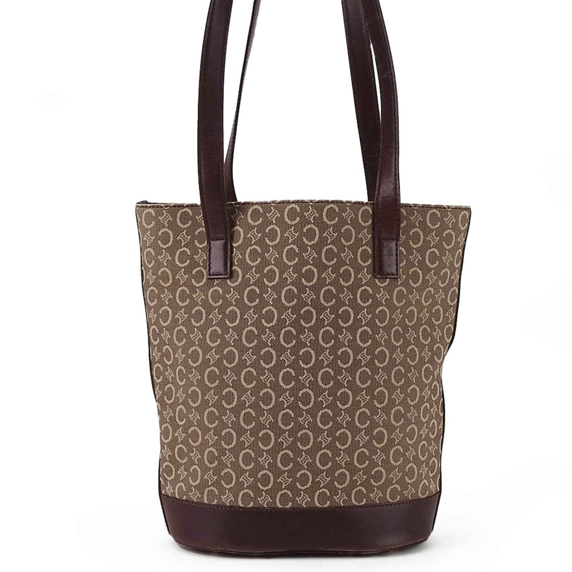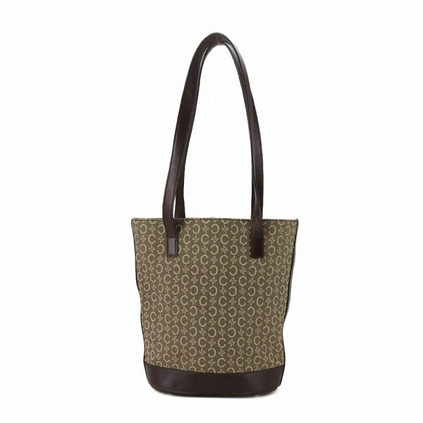 Celine Tote Bag Sulky Canvas Leather Beige Dark Brown Shoulder Bucket Women\'s CELINE