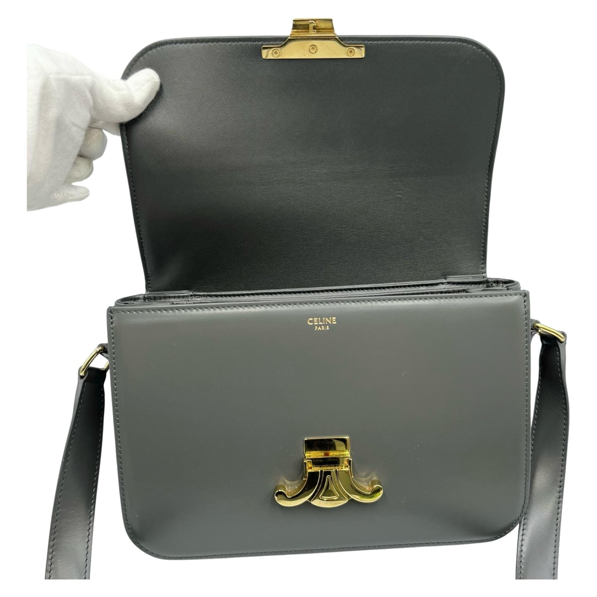 Celine Trim Off Shoulder Bag in Grey Calfskin for Women