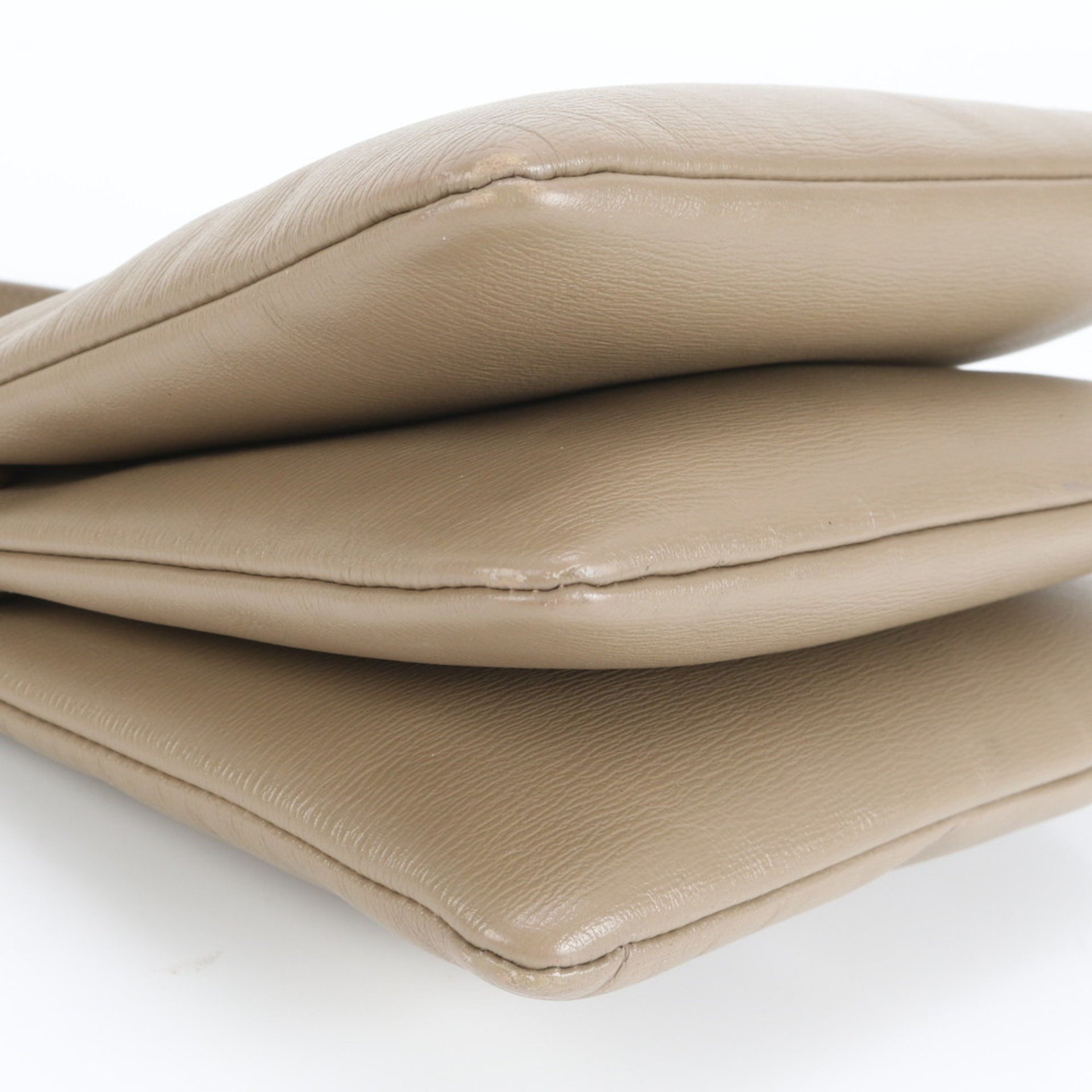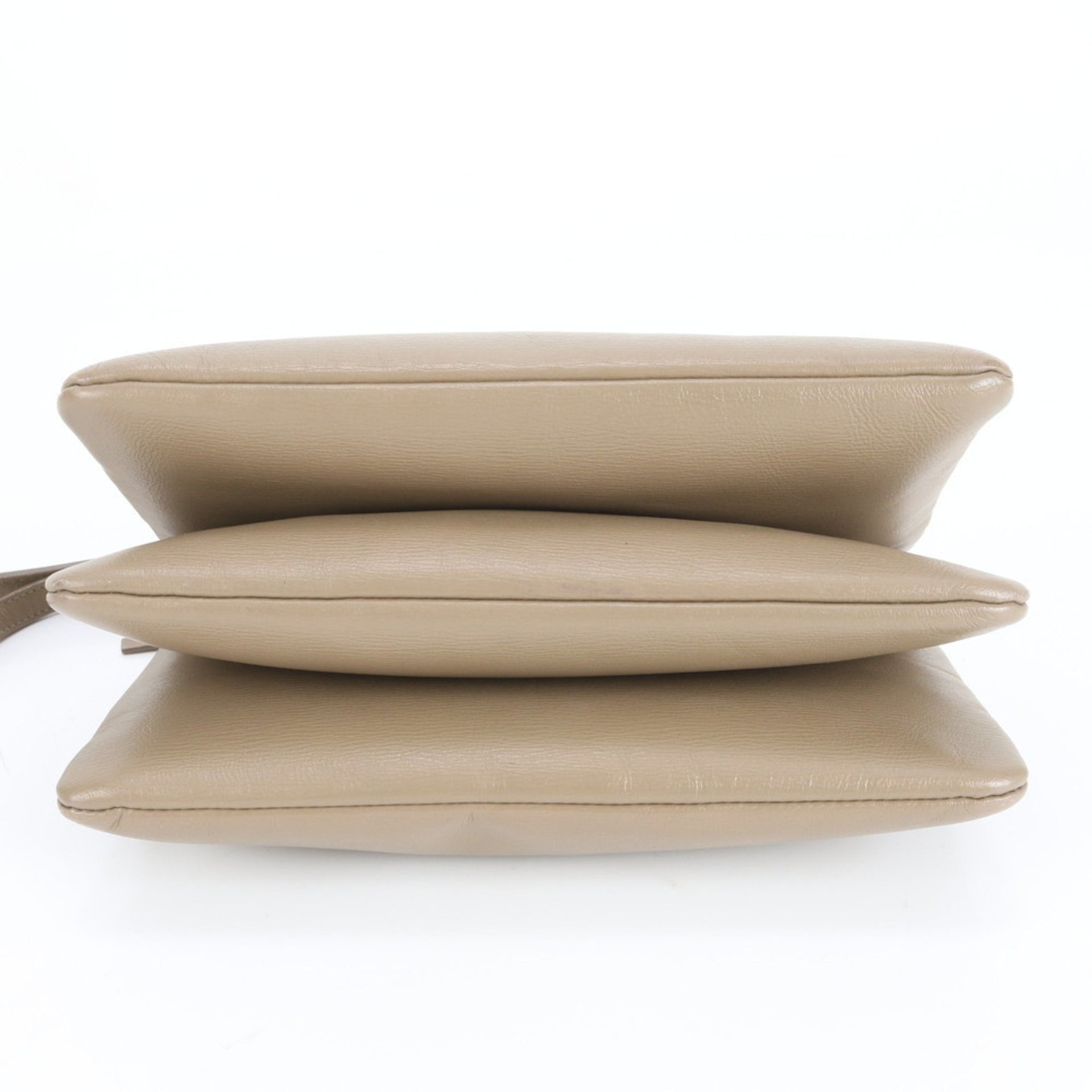 Celine Trio Small Leather Shoulder Bag, Crossbody Pouch, Beige Tote for Women