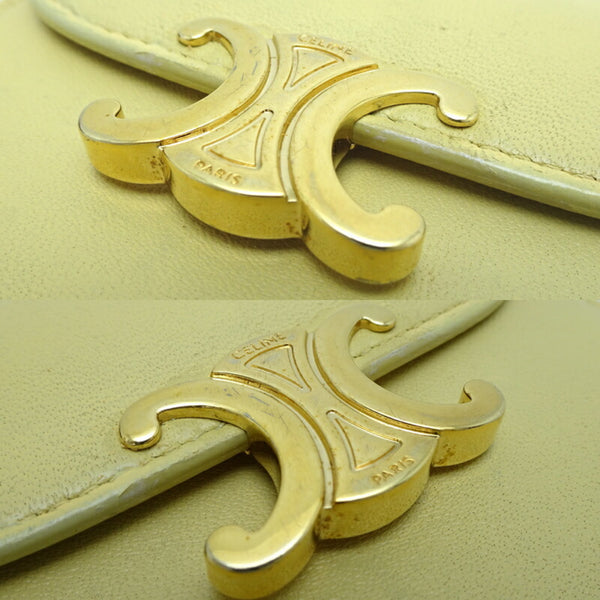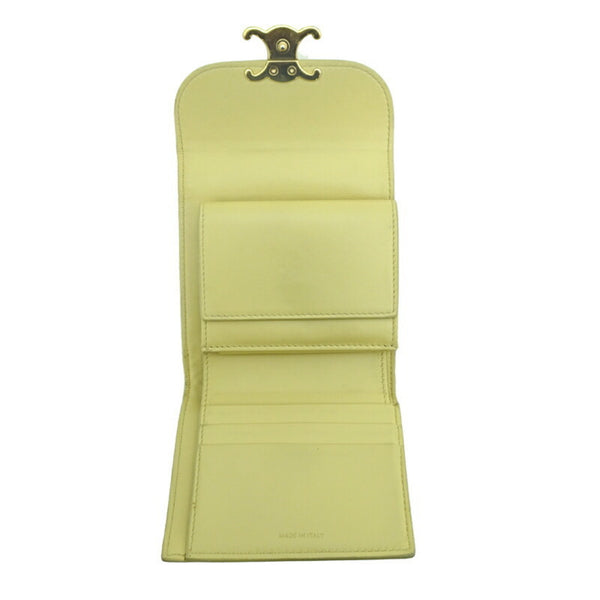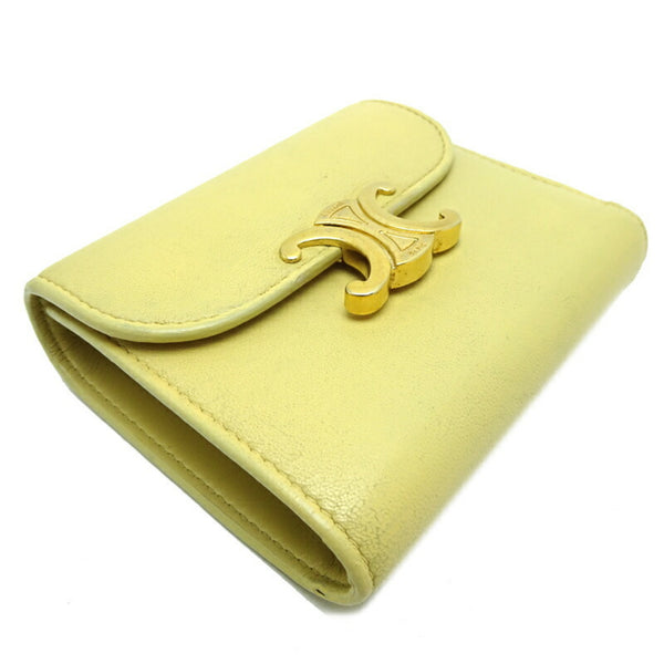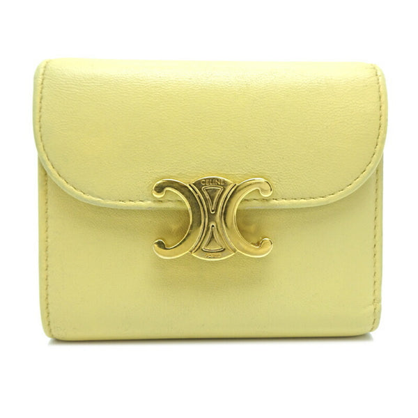 Celine Triomphe Compact Wallet, Women\'s Tri-fold Leather Light Yellow